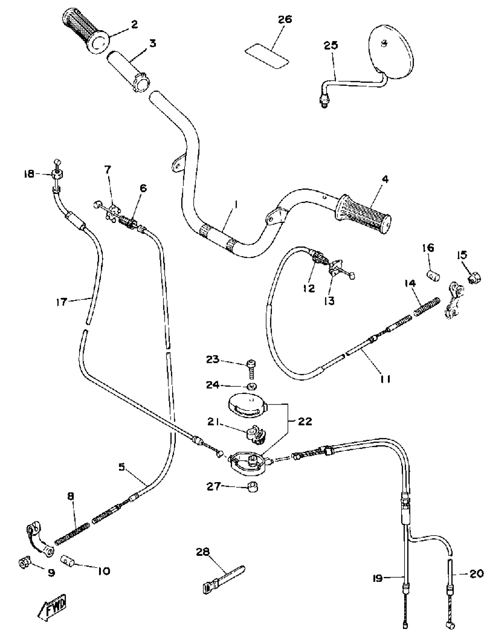 Yamaha LC50G (LC50) 1980 HANDLEBAR-CABLE Diagram