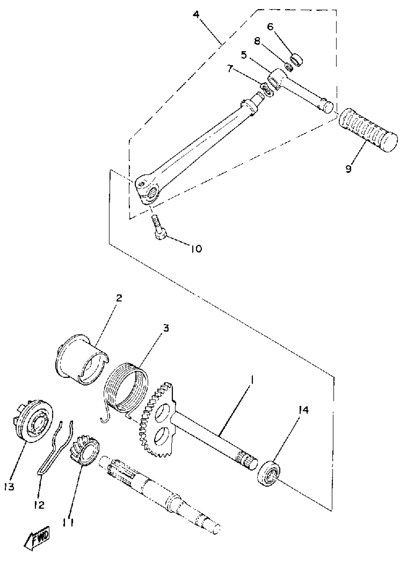Yamaha LC50G (LC50) 1980 KICK STARTER Diagram