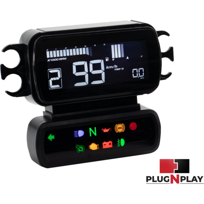 This gauge is capable of displaying vital readings such as engine temperature, battery voltage, tire pressure and a complete system of indicator lights to monitor your bikes vital signs.