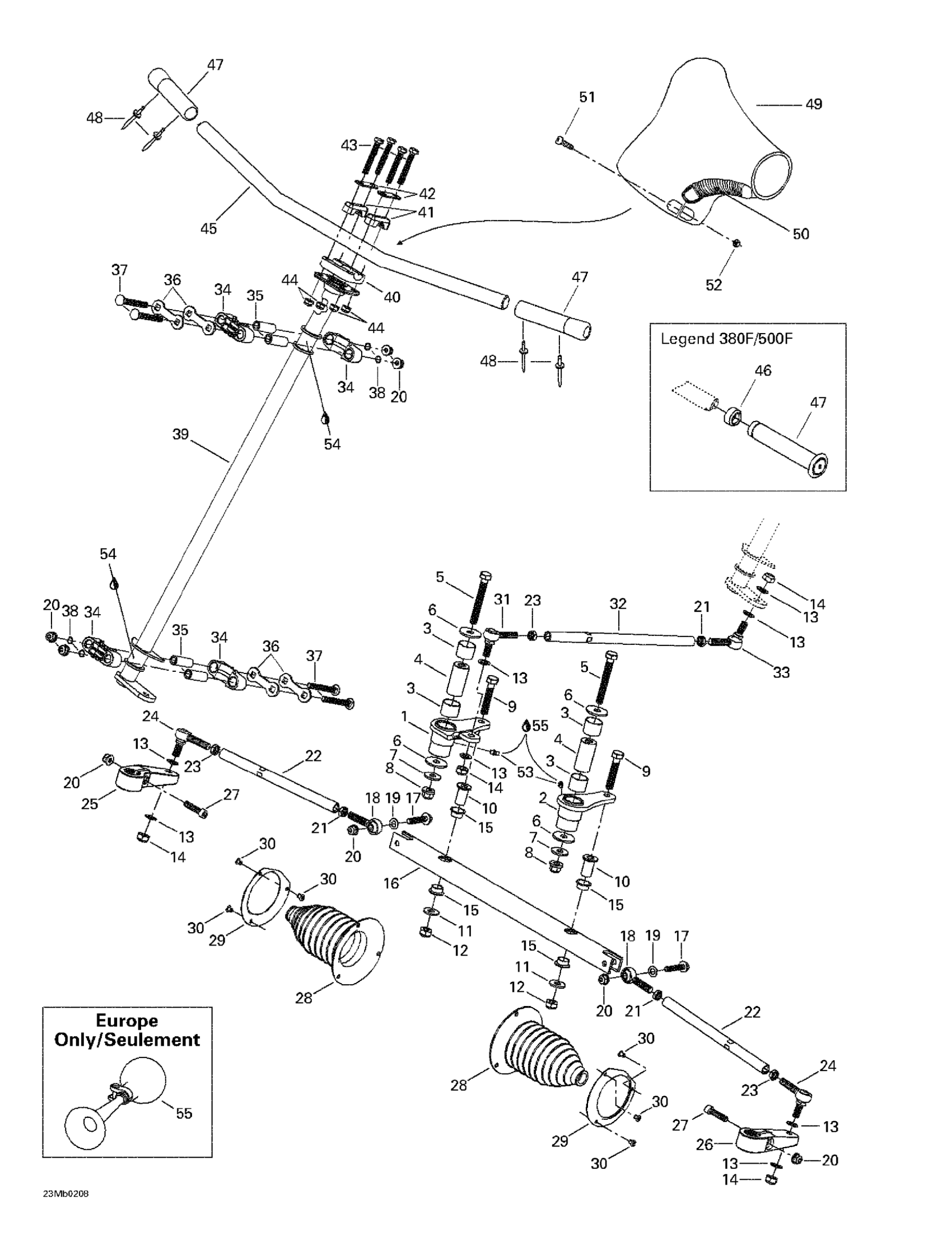Ski-Doo Legend 380F/500F, 2002 Steering System Diagram