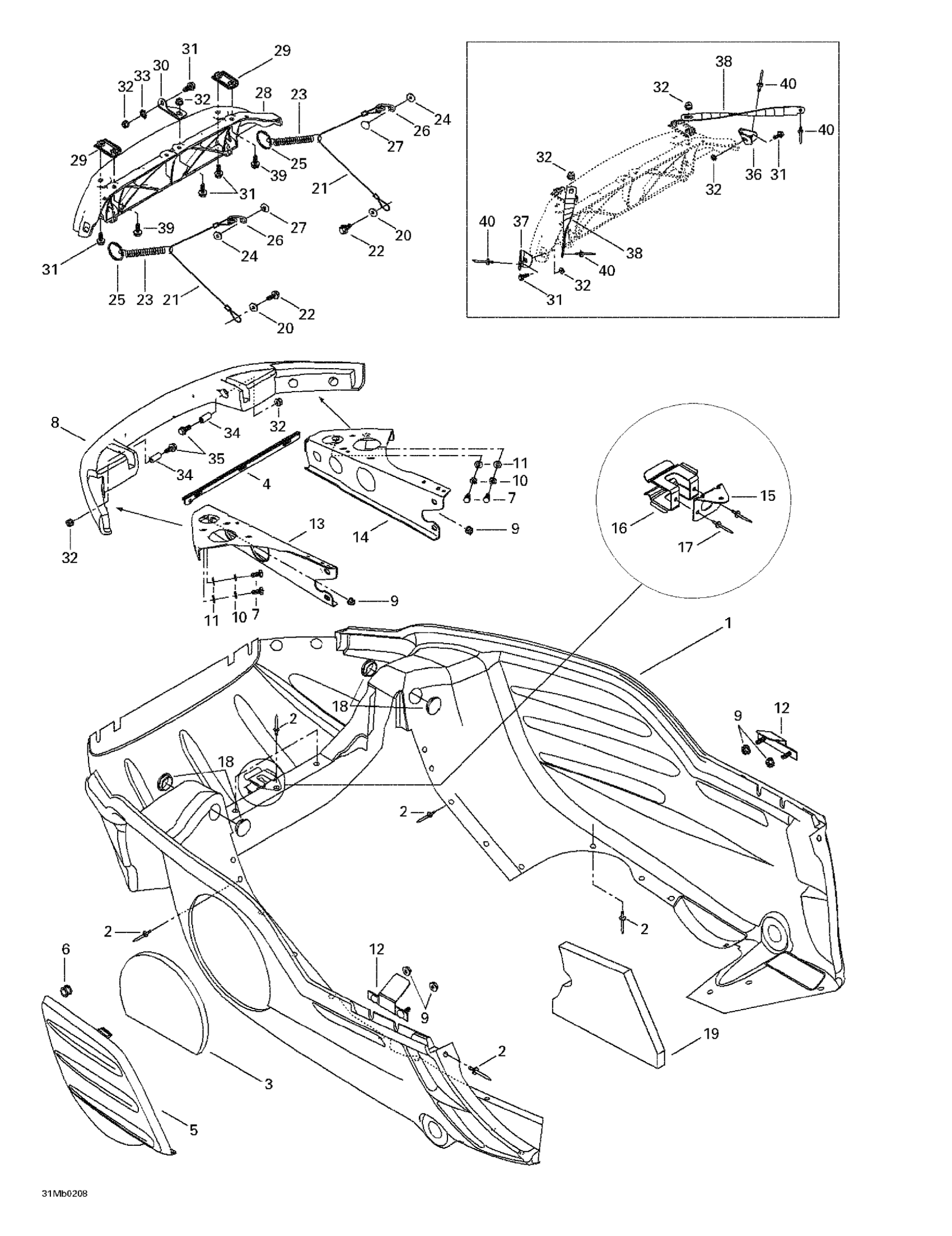 Ski-Doo Legend 380F/500F, 2002 Bottom Pan Diagram