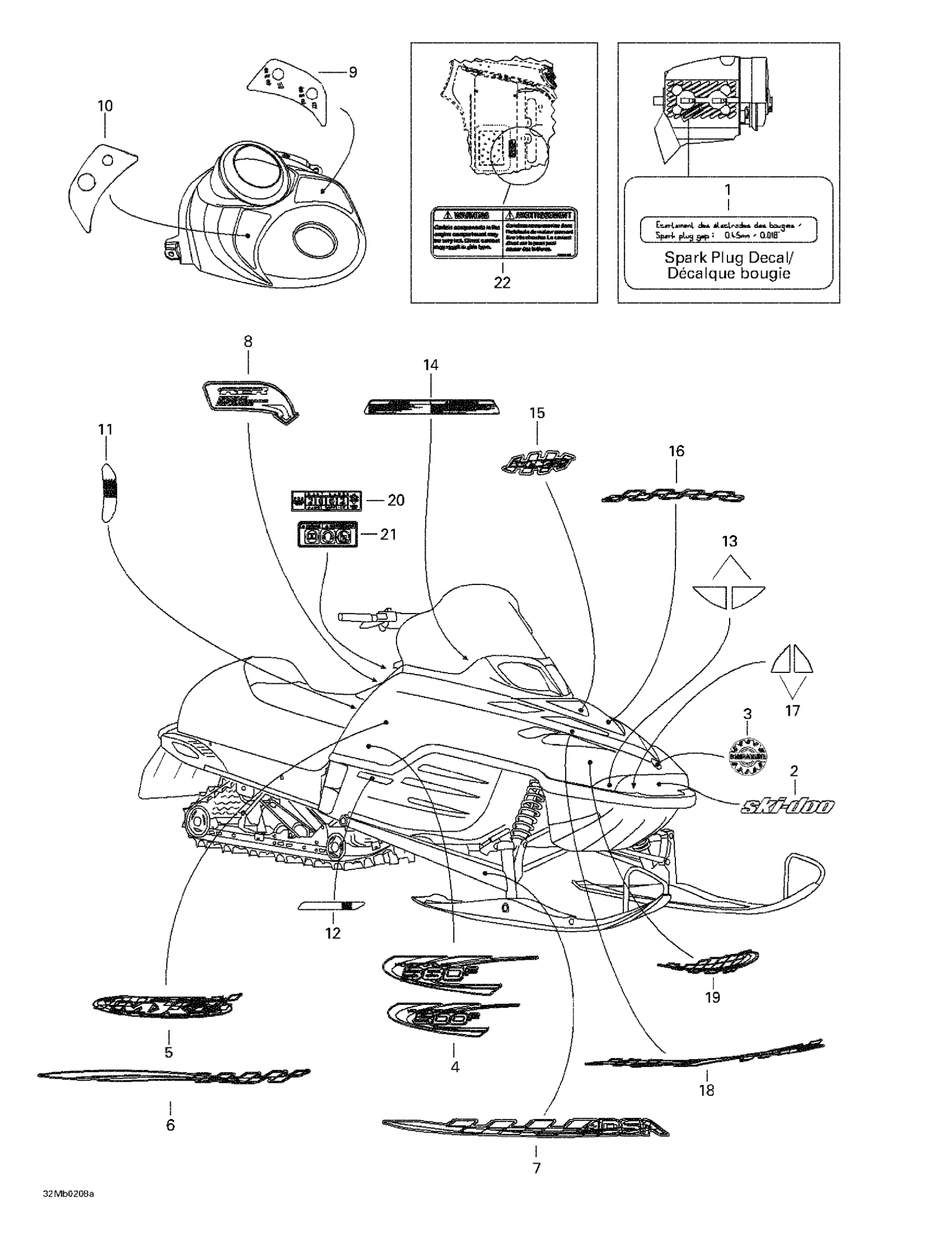 Ski-Doo Legend 380F/500F, 2002 Decals Diagram