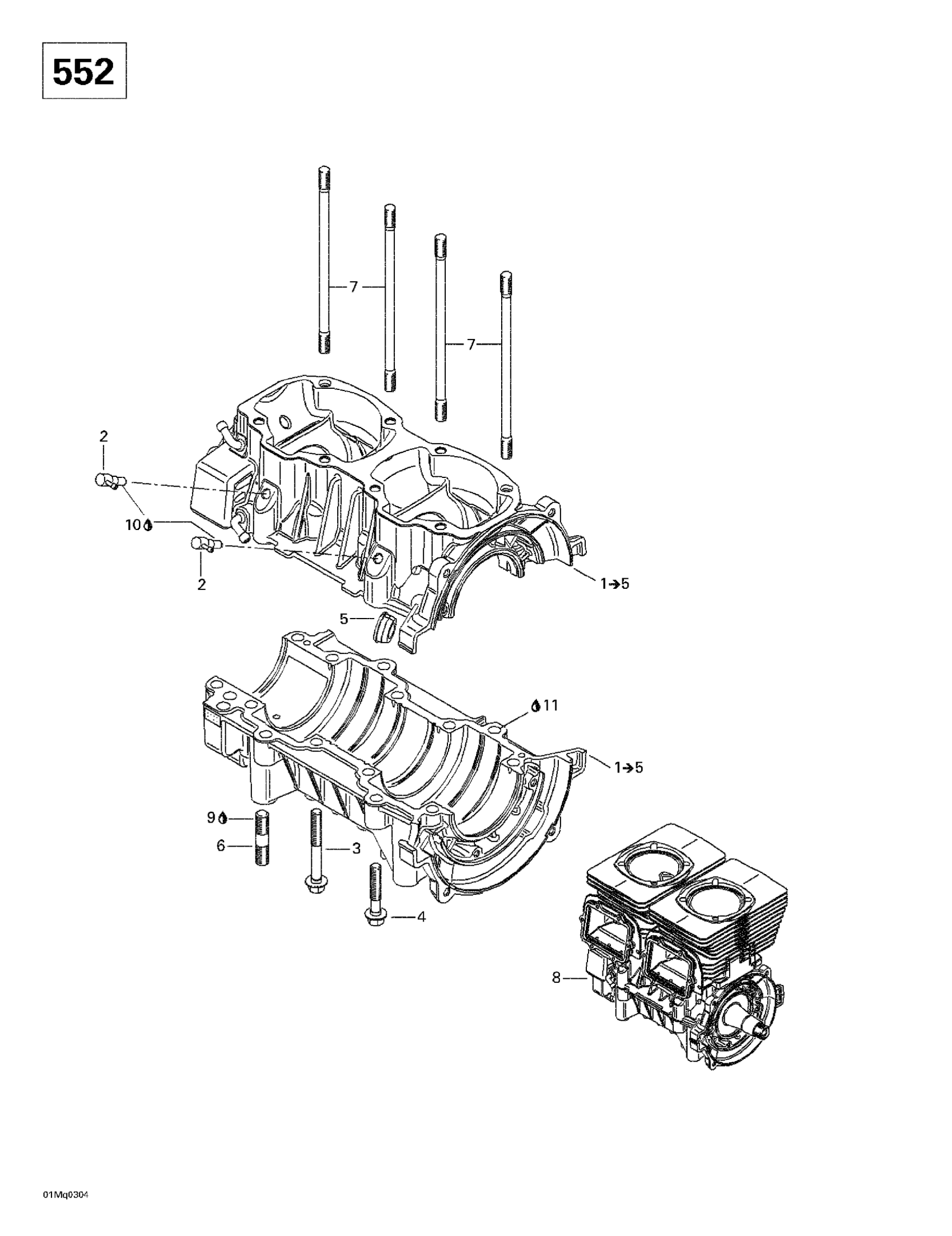 Crankcase Ass'y | Includes 1 - 5. 550 F.