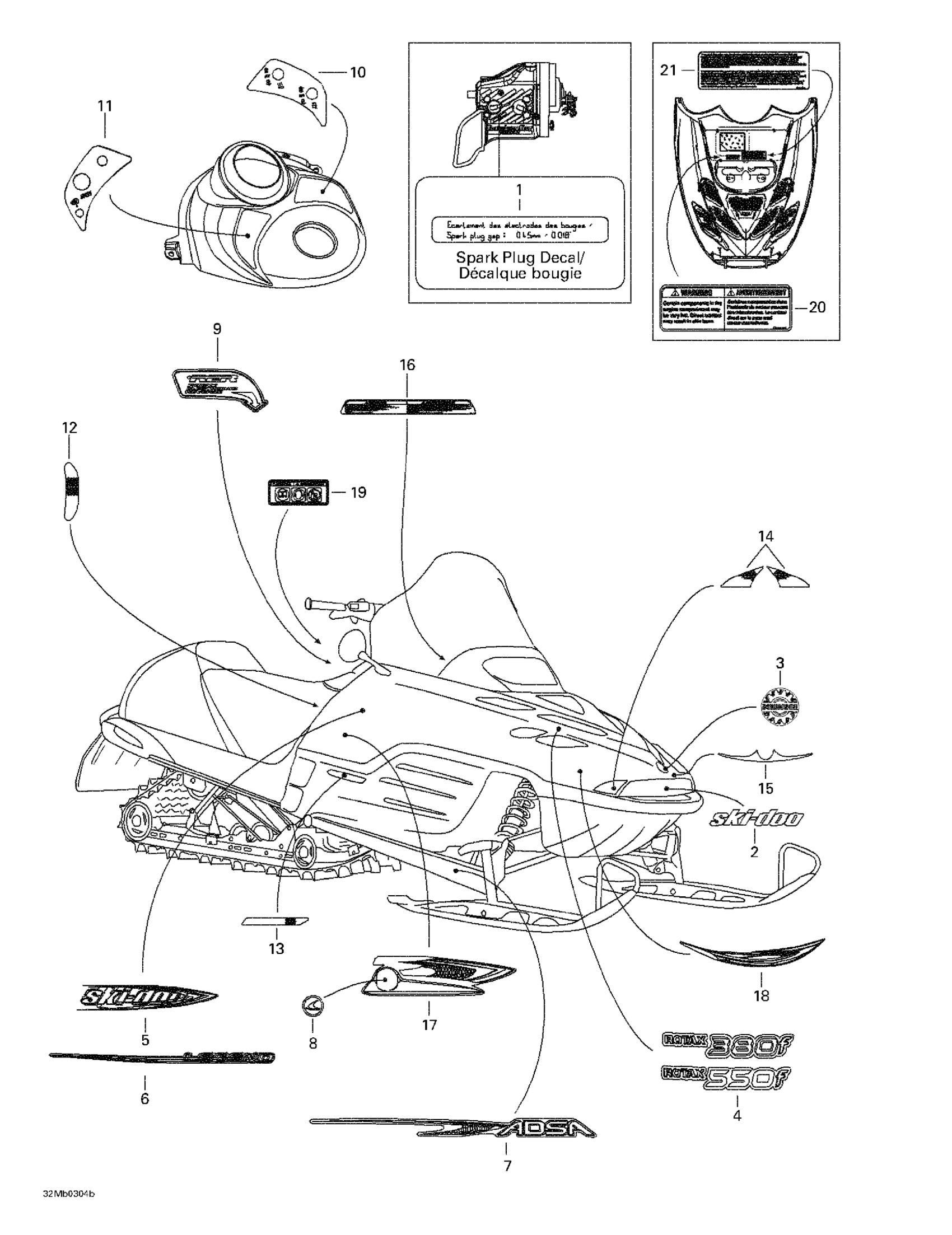 Ski-Doo Legend 380F/550F, 2003 Decals 2 Diagram