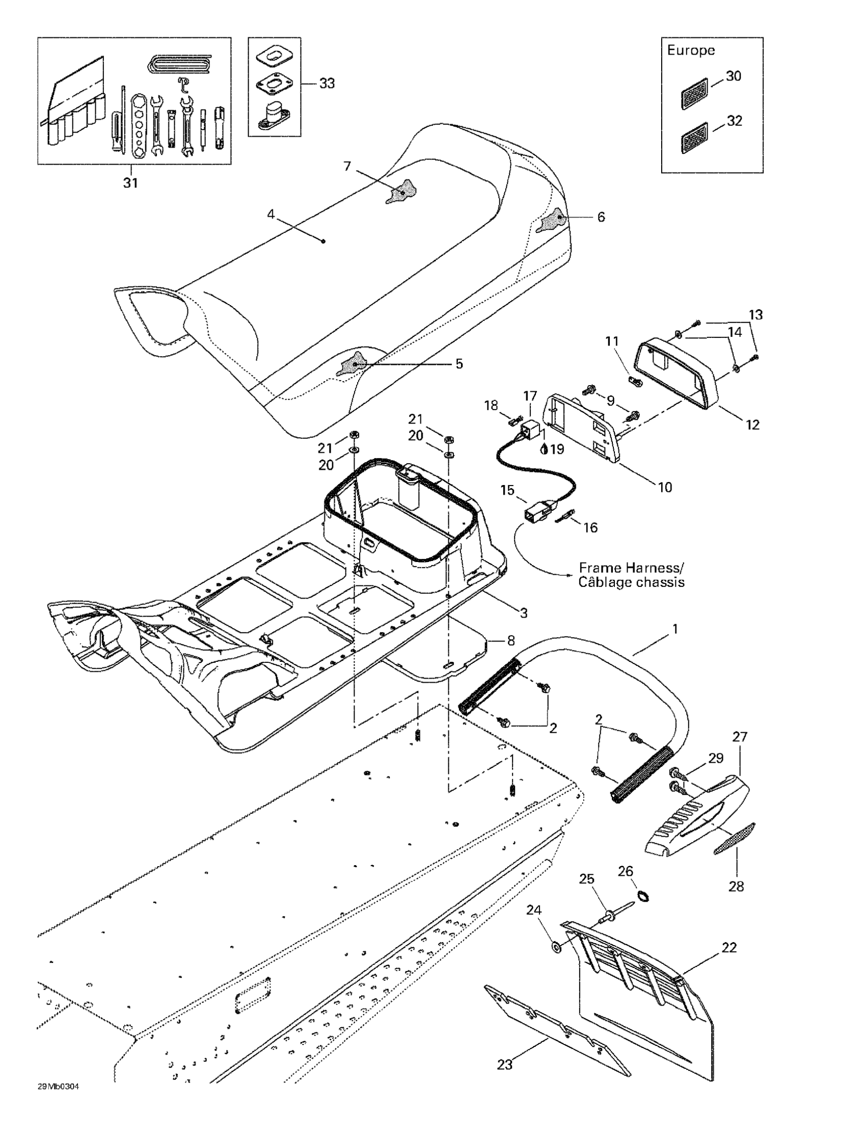 Ski-Doo Legend 380F/550F, 2003 Seat And Accessories Diagram