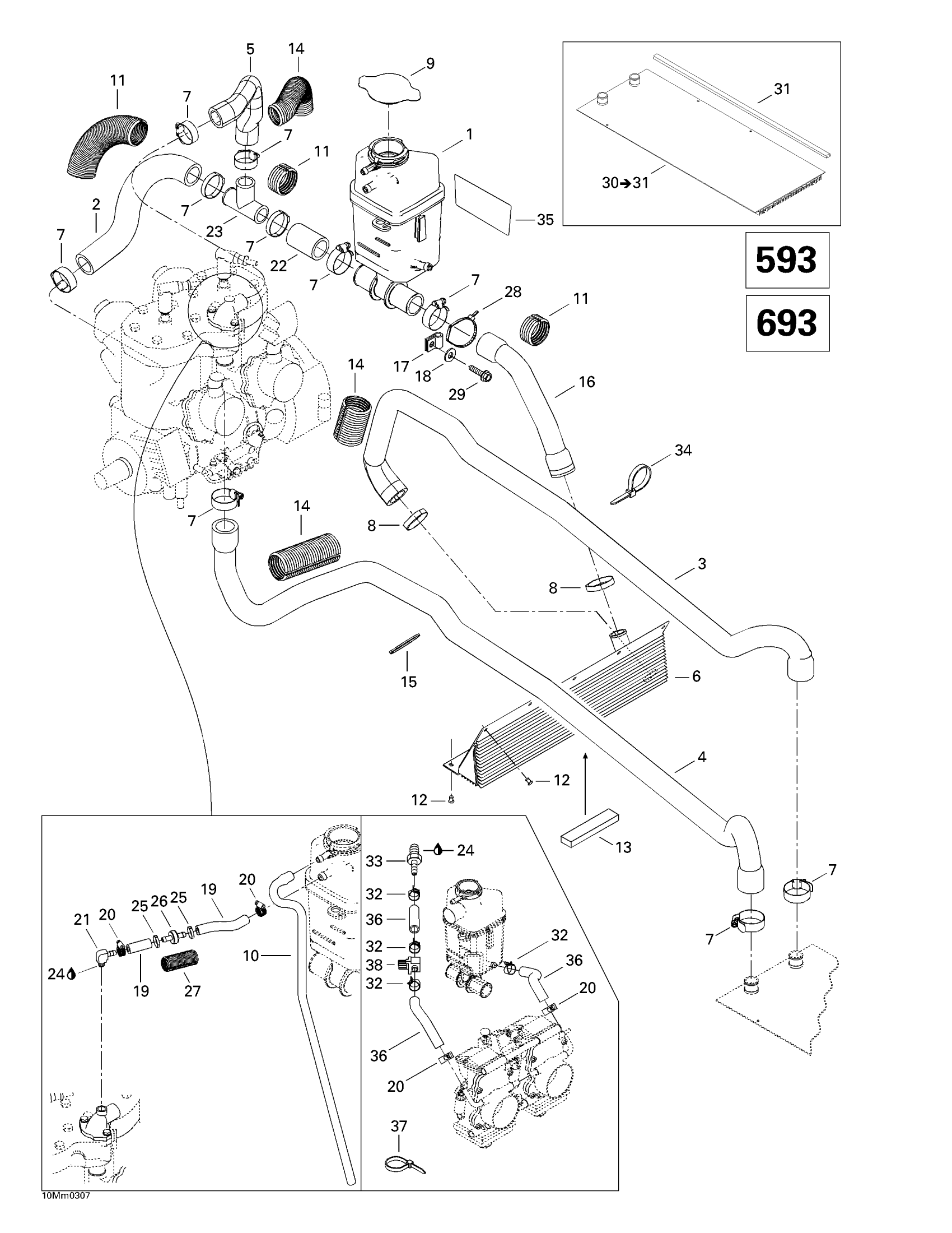 Ski-Doo Legend 500/600/700, 2003 Cooling System (593) Diagram
