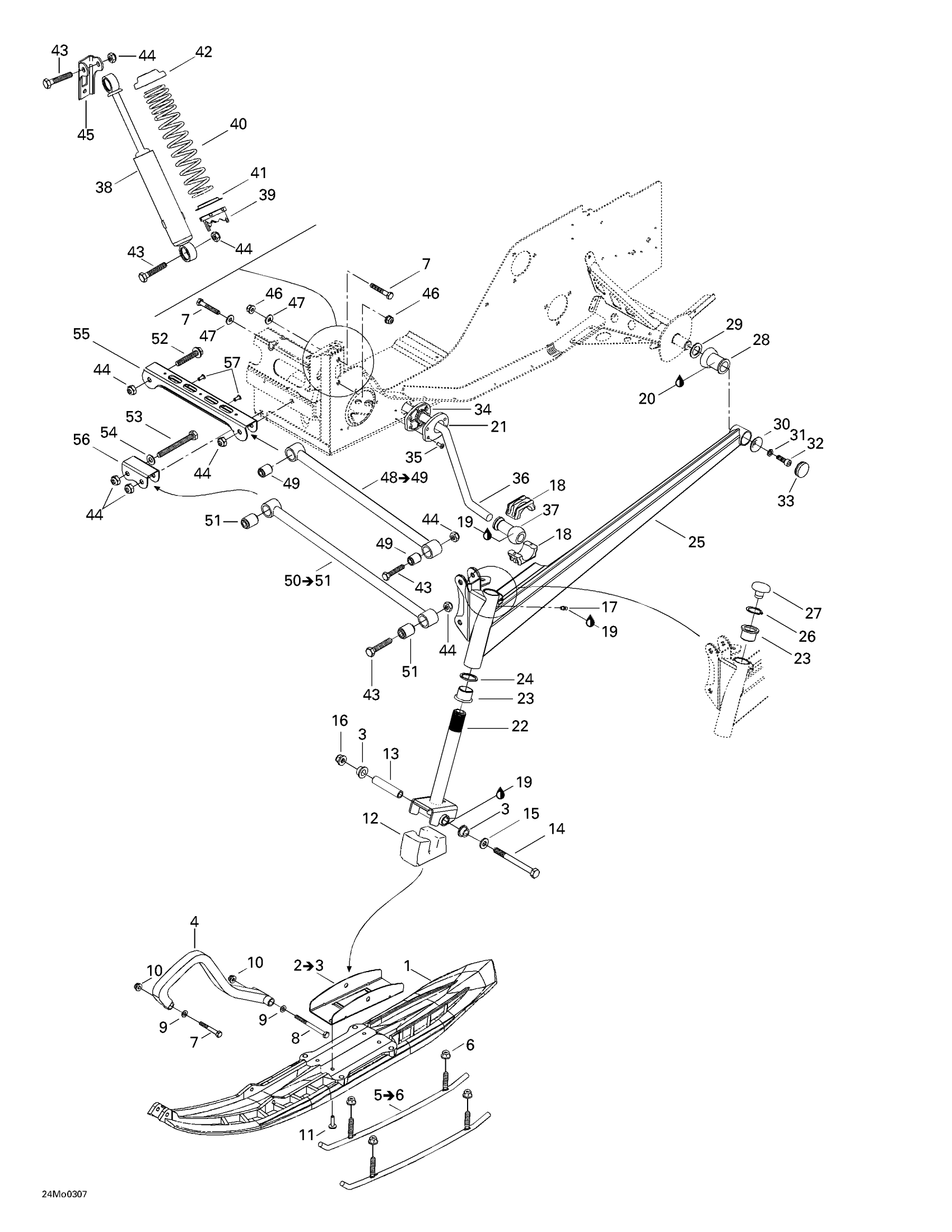 Ski-Doo Legend 500/600/700, 2003 Front Suspension And Ski Diagram