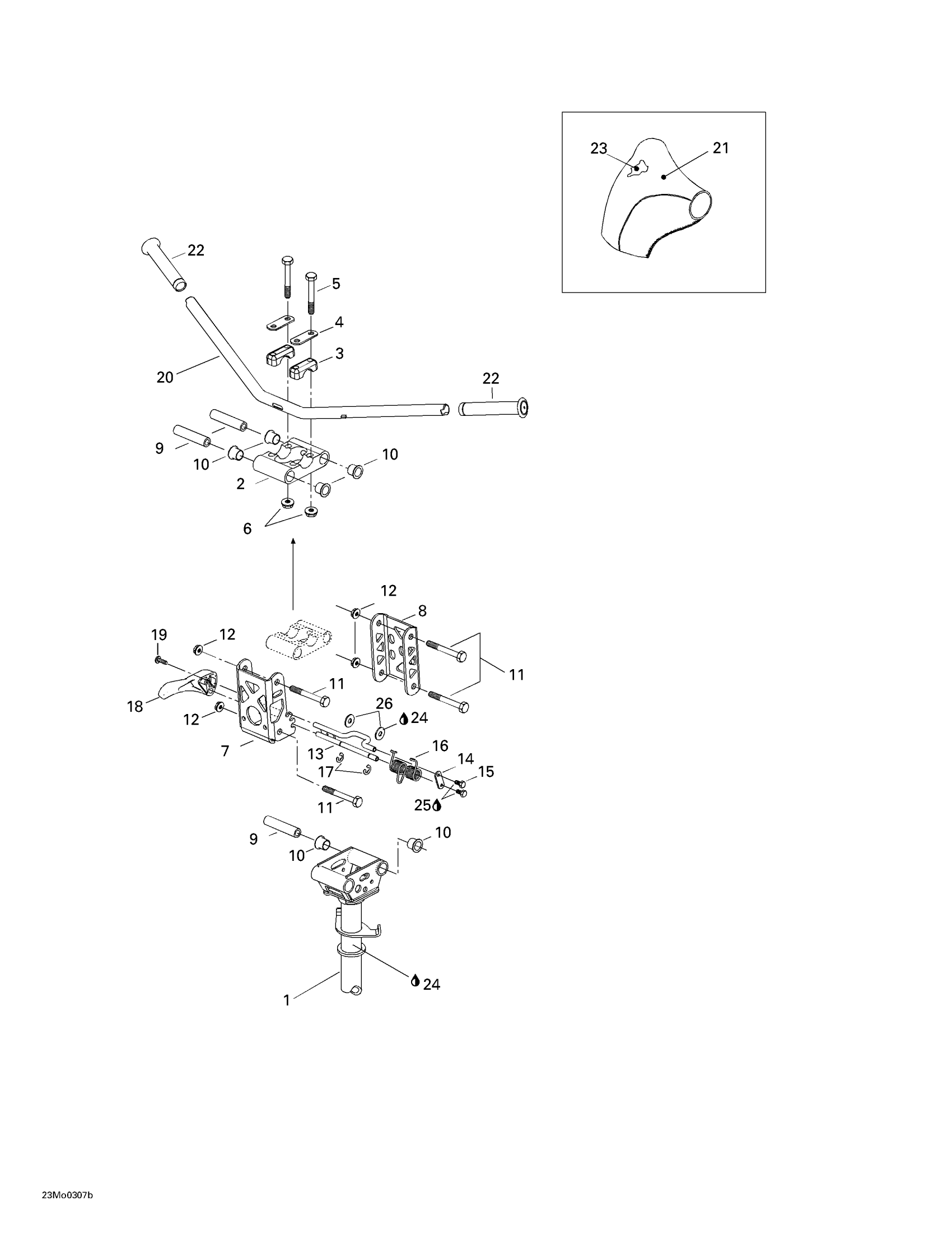Ski-Doo Legend 500/600/700, 2003 Handlebar - Adjustable (SE) Diagram