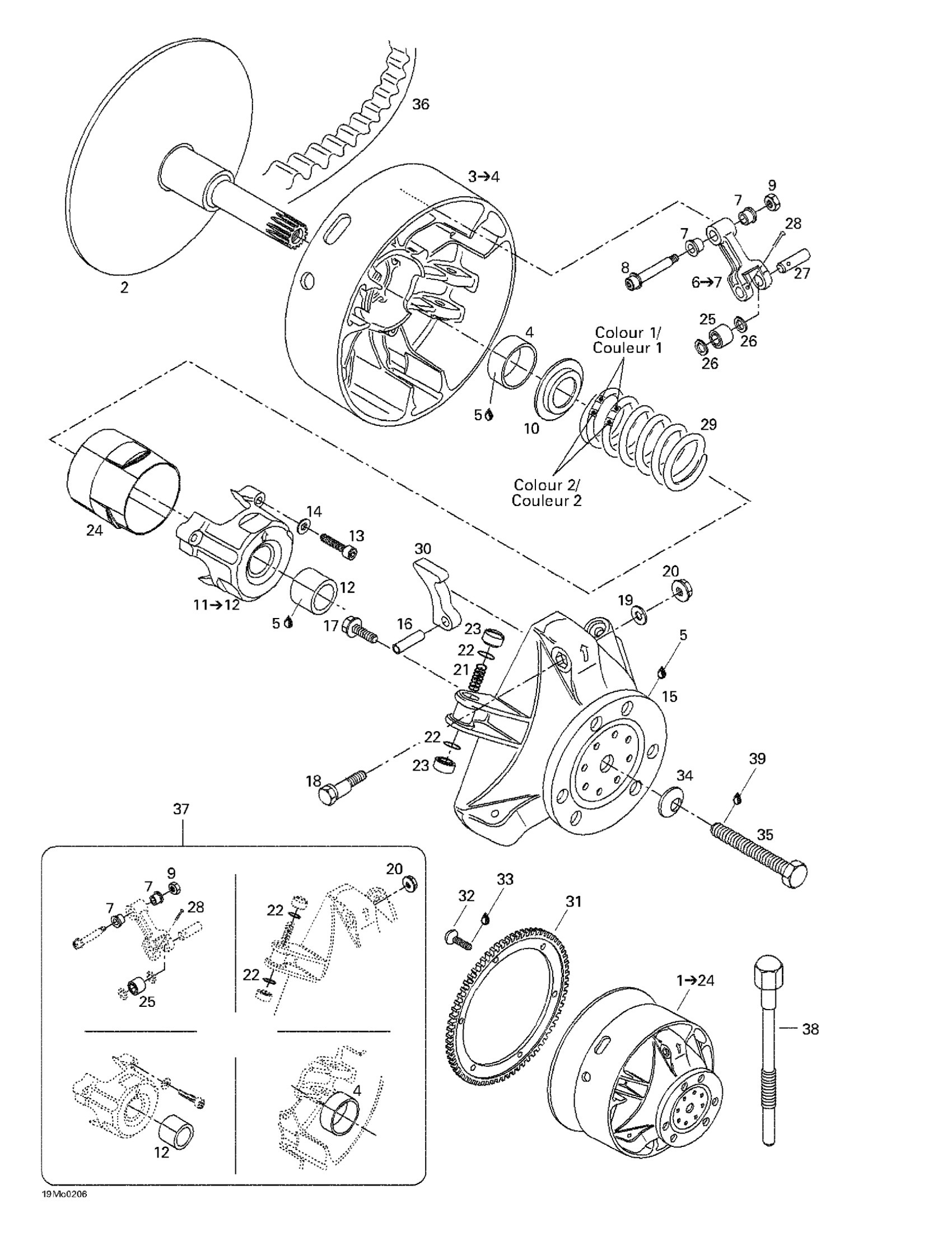 Ski-Doo Legend 500/600/700/800, 2002 Drive Pulley Diagram