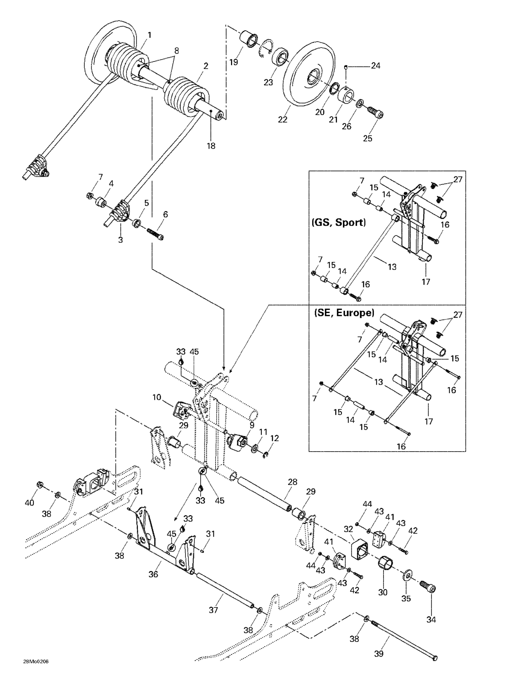 Ski-Doo Legend 500/600/700/800, 2002 Rear Arm Diagram