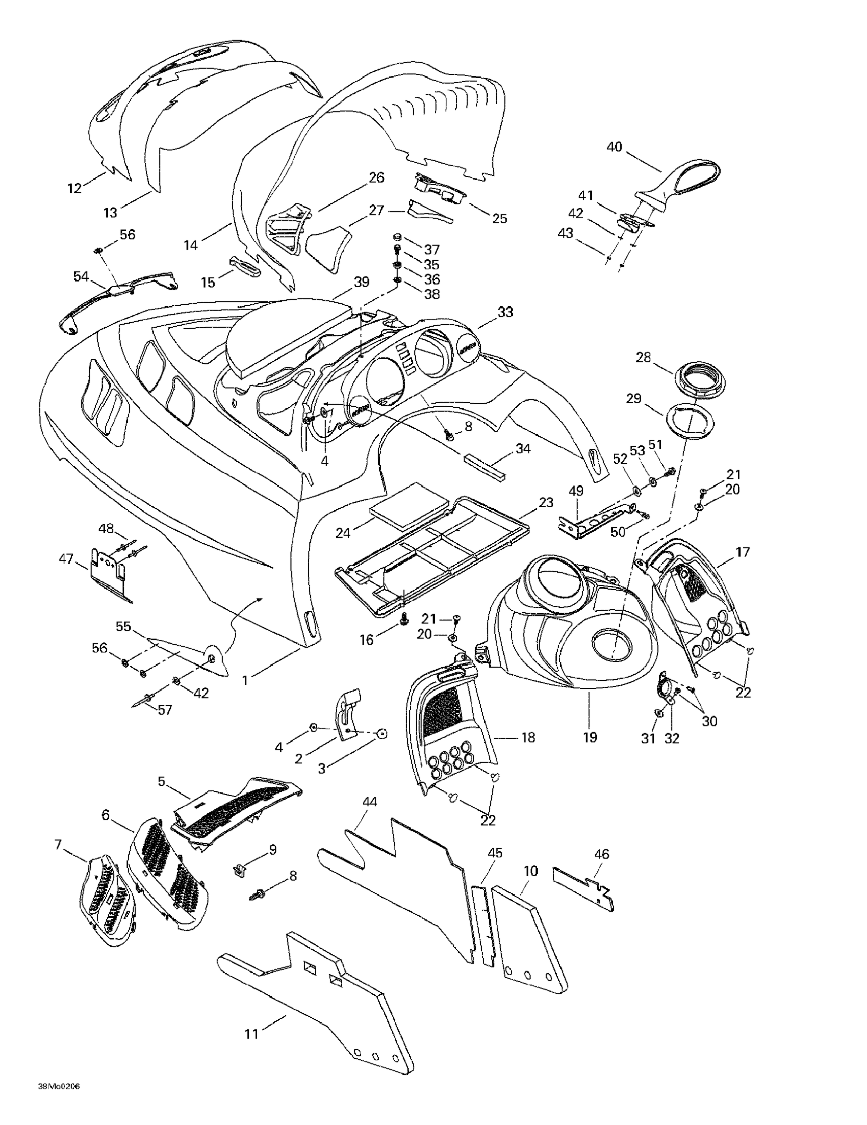 Ski-Doo Legend 500/600/700/800, 2002 Cab, Console Diagram