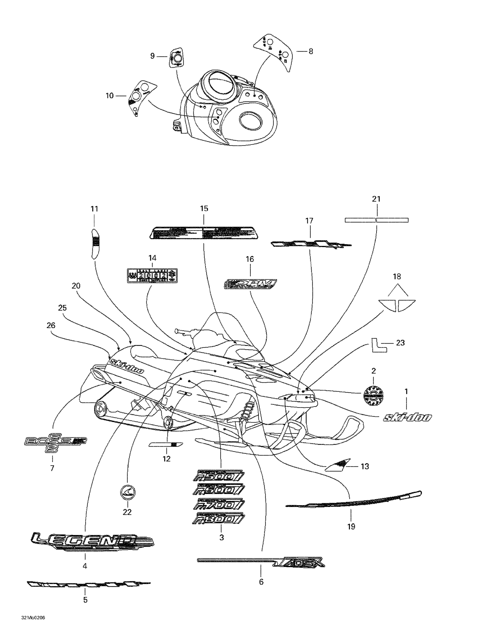 Ski-Doo Legend 500/600/700/800, 2002 Decals Diagram