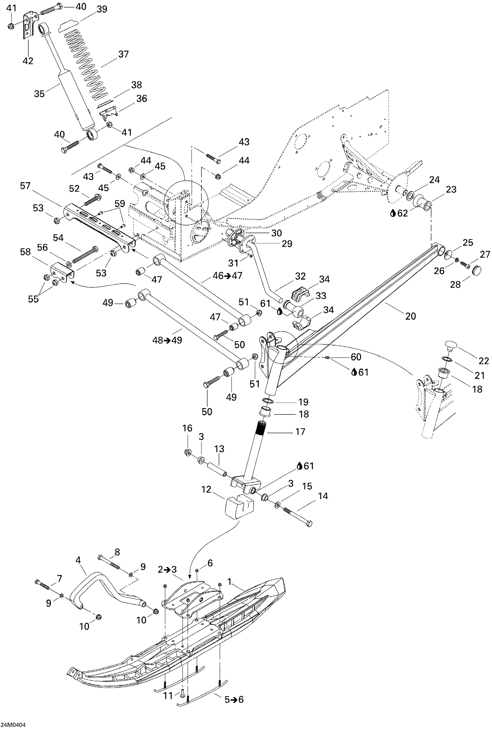 Ski-Doo Legend 500 SS, 2004 Front Suspension And Ski Diagram