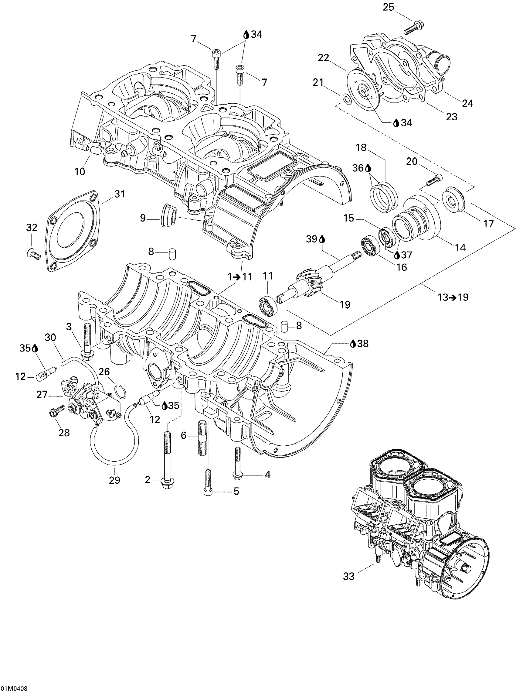 CRANKCASE ASS'Y - Call your local BRP dealership | Includes items 1 to 11 / 800 SDI