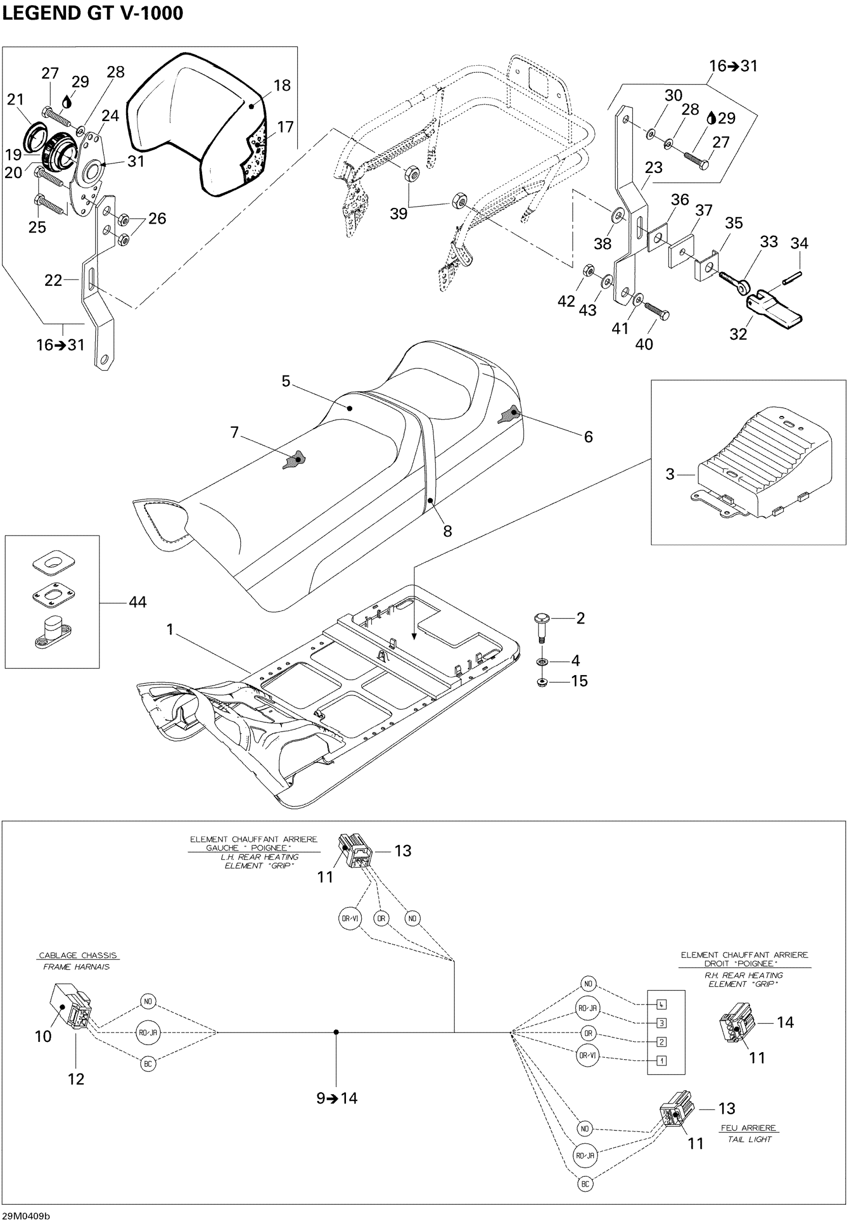 Ski-Doo Legend V-1000, 2004 Seat (2 Passengers) Diagram