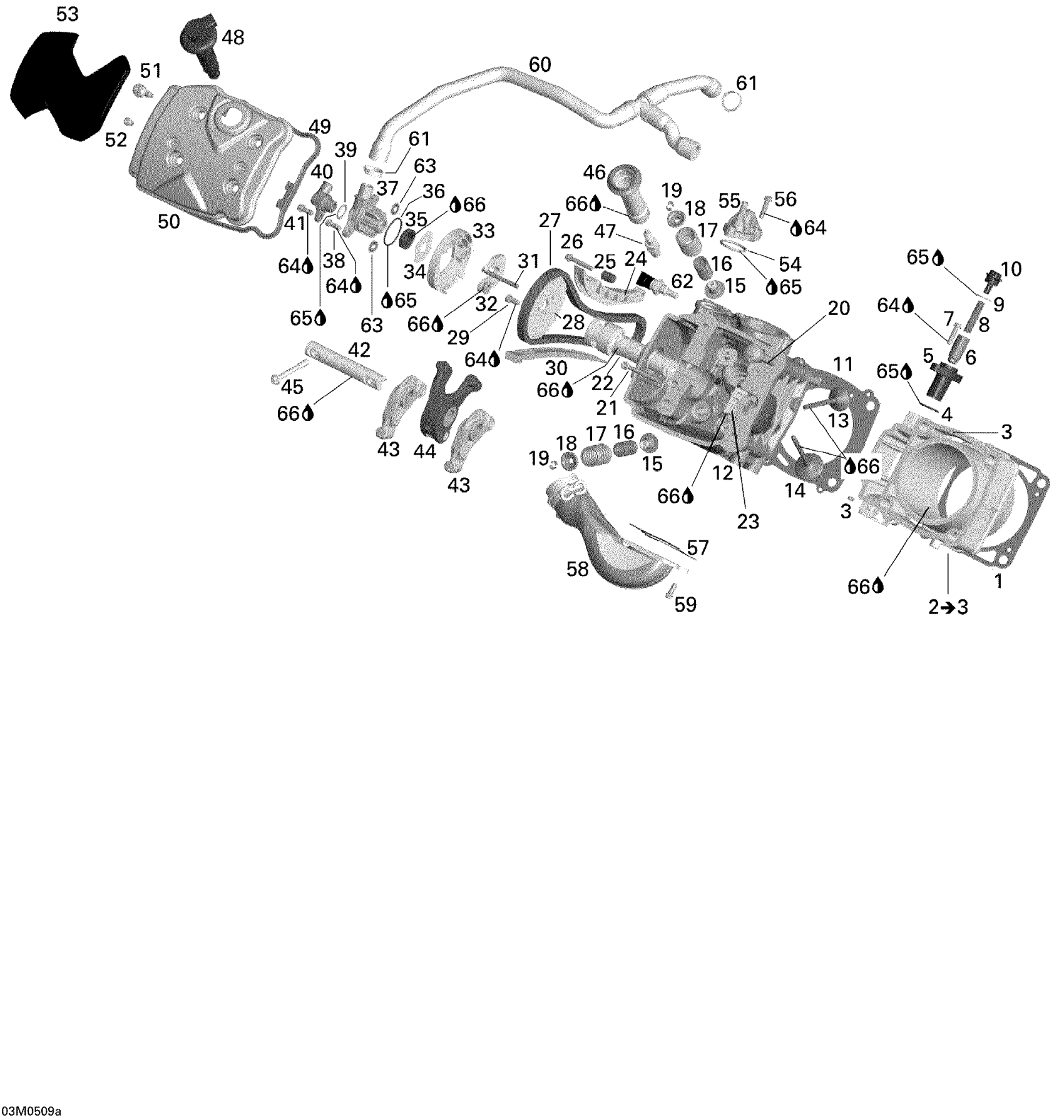 Ski-Doo Legend V-1000, 2005 Cylinder and Cylinder Head - Front Side Diagram