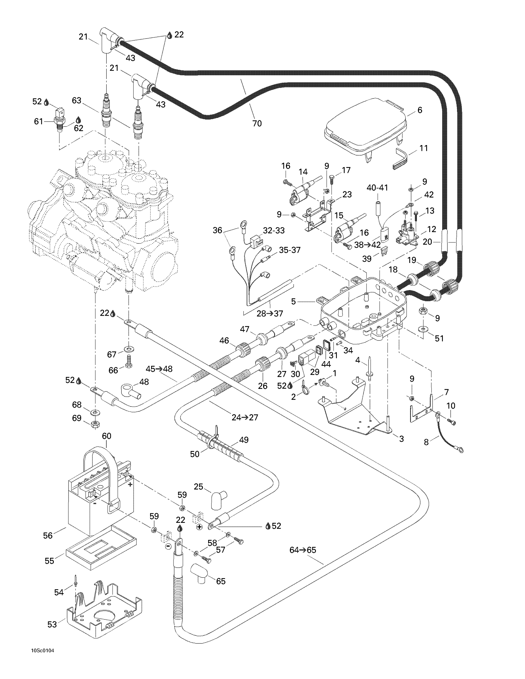 STARTER RED CABLE - Call your local BRP dealership | Includes 44 to 47