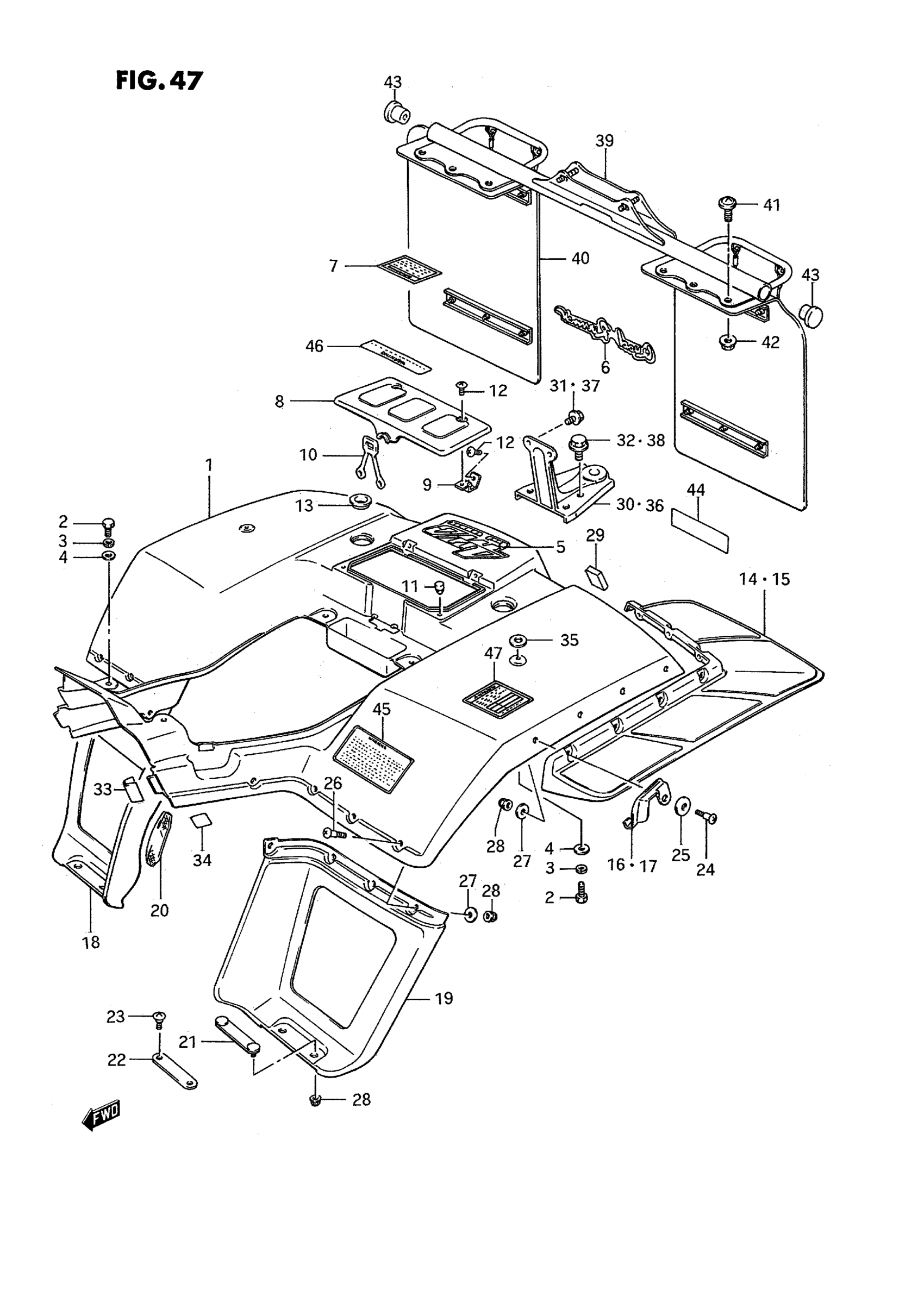 Suzuki LT-4WD (1995) REAR FENDER (MODEL H/J/K/L) Diagram