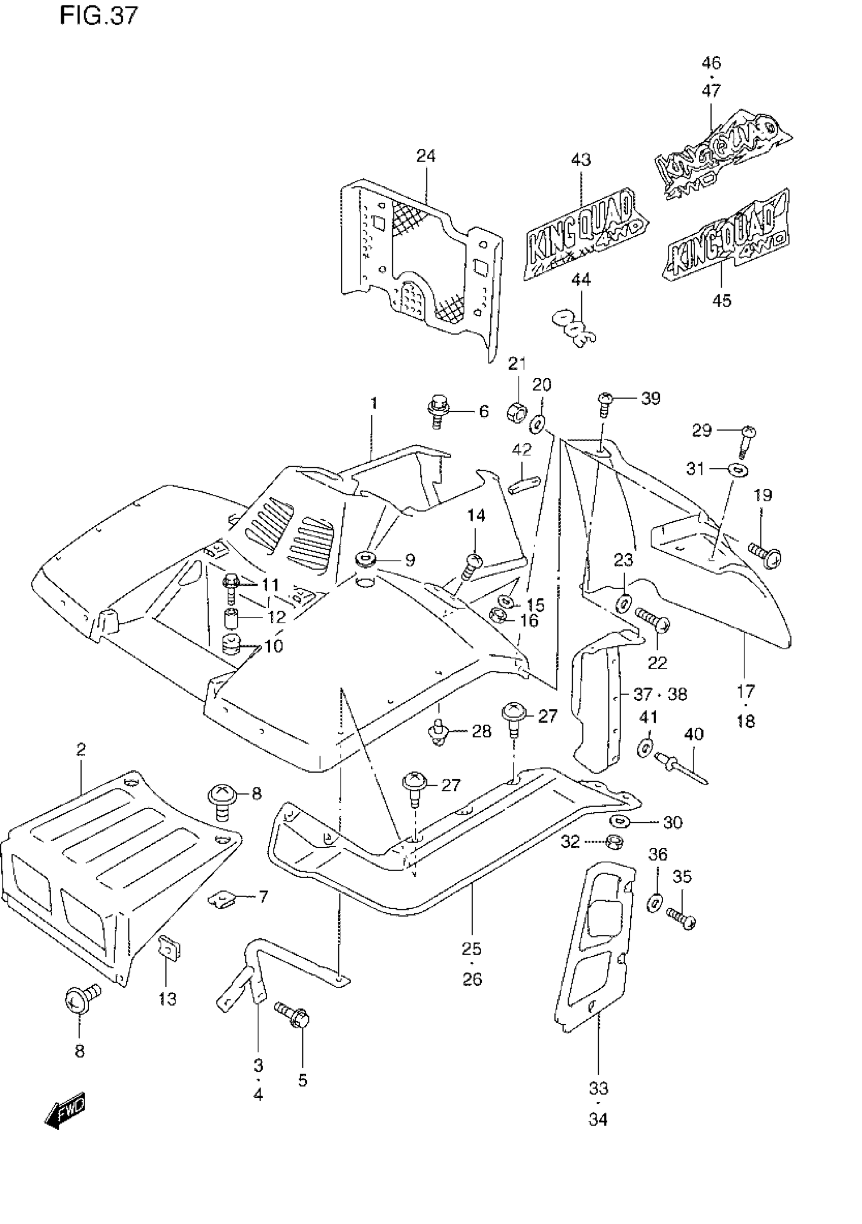 Suzuki LT-4WDXW (1998) FRONT FENDER Diagram