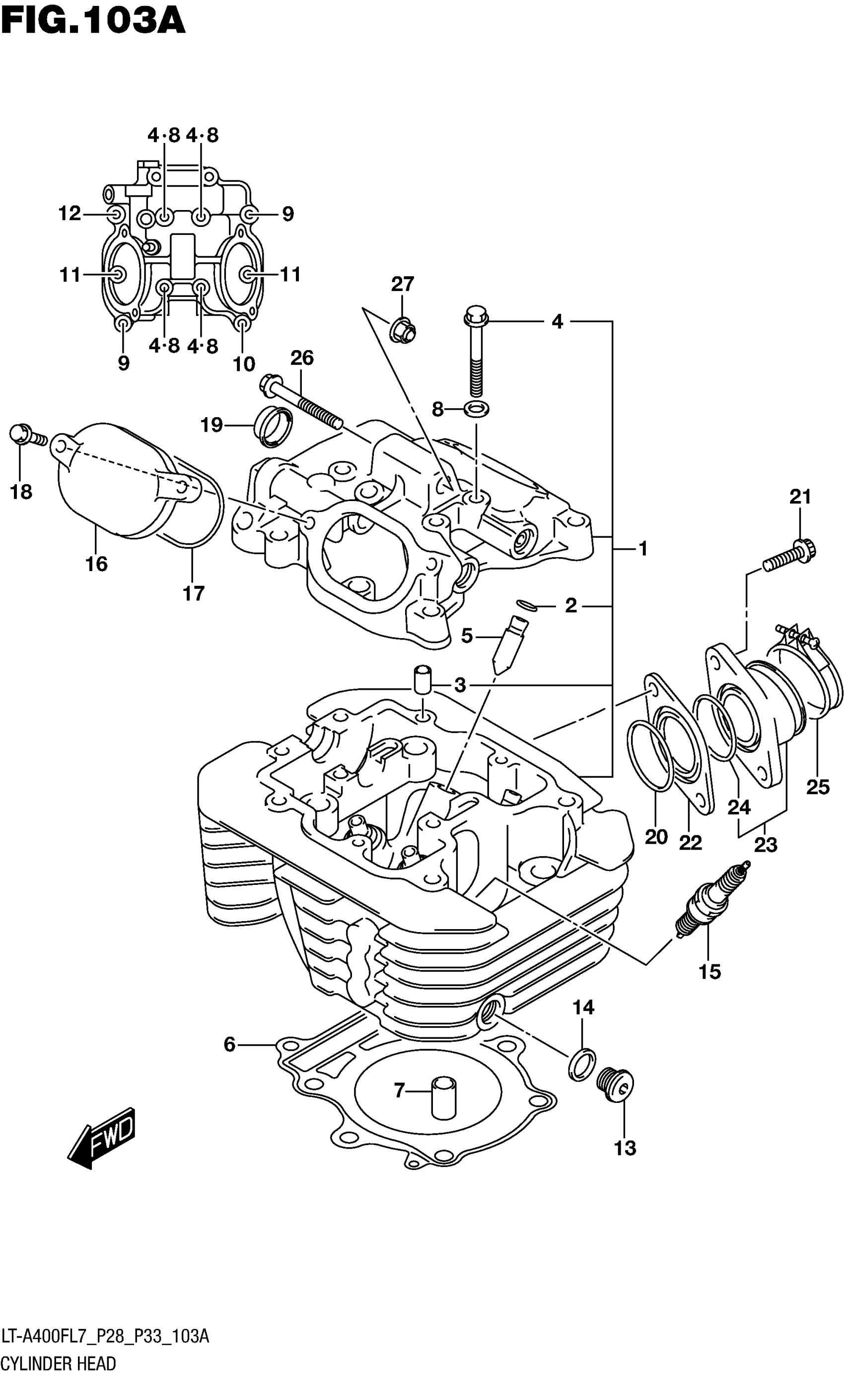 Suzuki LT-A400FCL7 ASI, (XD3 CAMO) (2017) CYLINDER HEAD (LT-A400FL7 P28) Diagram