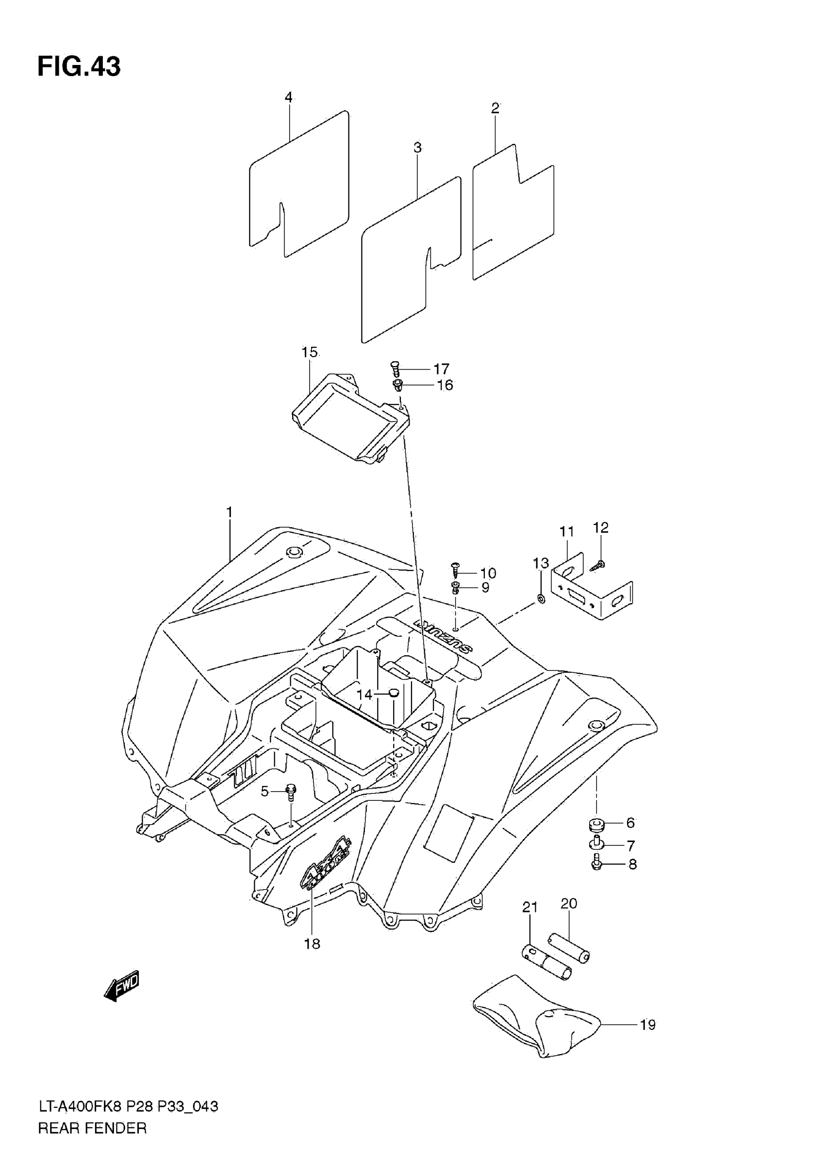 Suzuki LT-A400FK8 (2010) REAR FENDER (LT-A400FK8/FK9/FUL0) Diagram