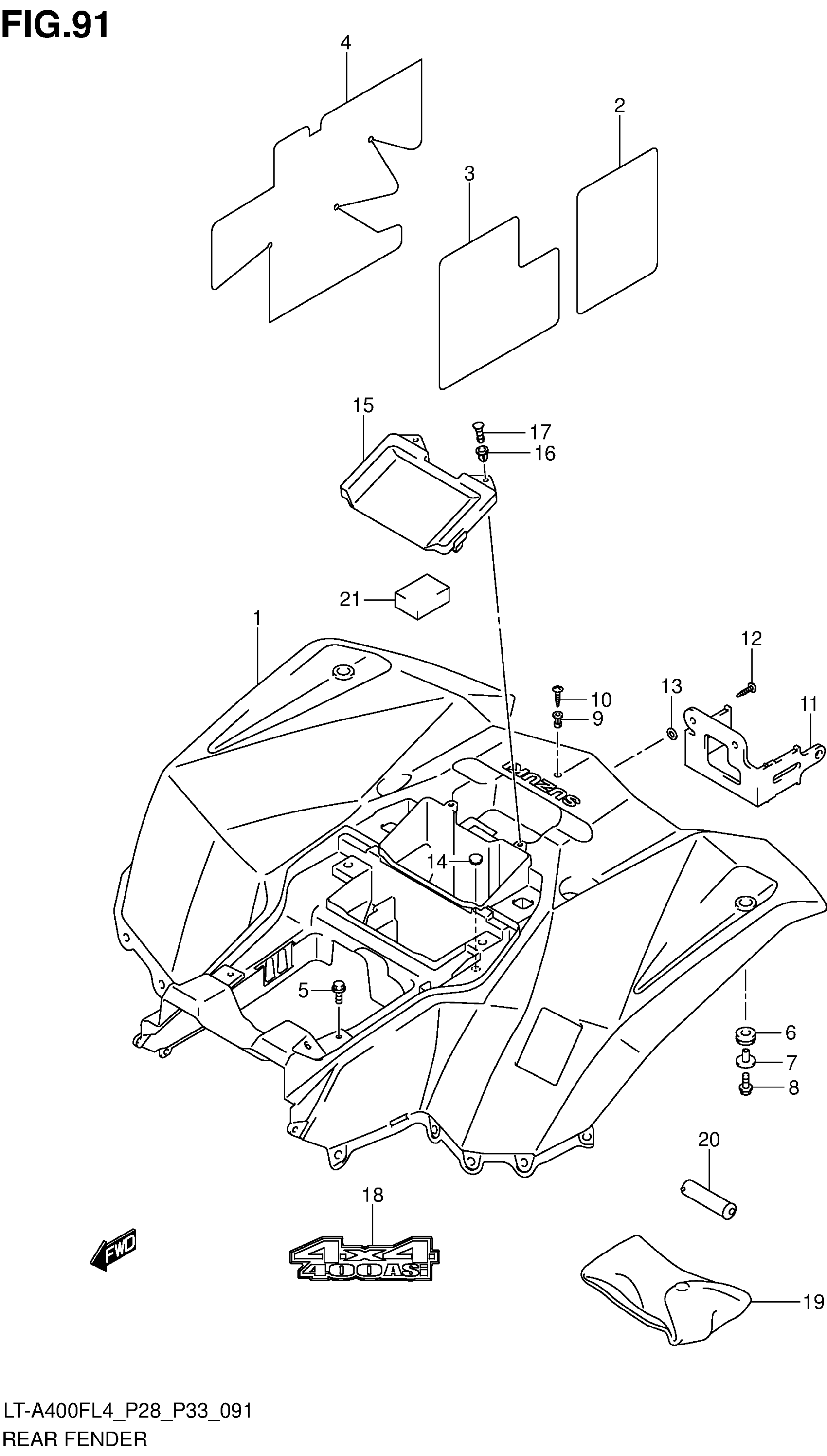 Suzuki LT-A400FL4 (2014) REAR FENDER (LT-A400FL4 P28) Diagram