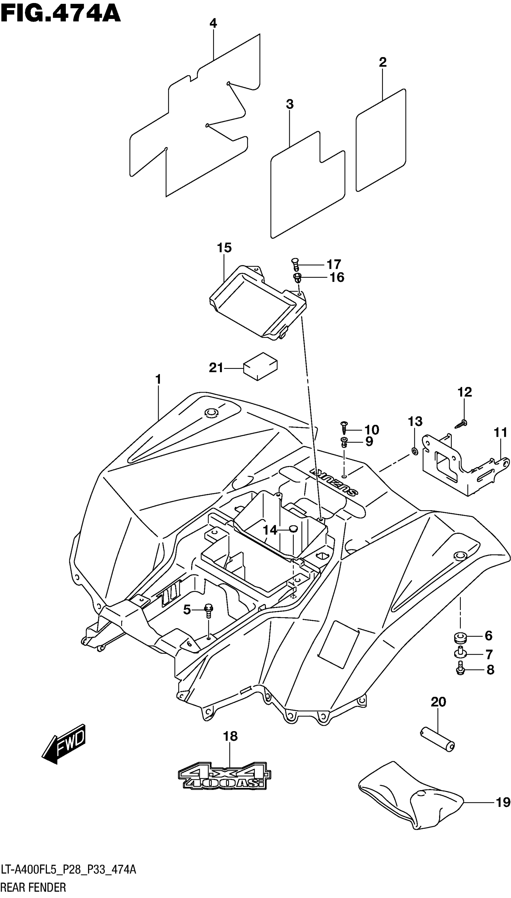 Suzuki LT-A400FL5 (2015) REAR FENDER (LT-A400FL5 P28) Diagram