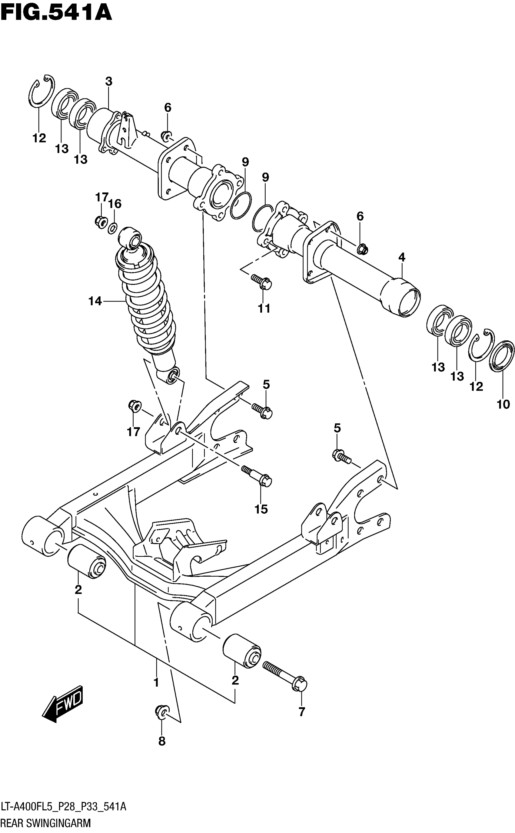 Suzuki LT-A400FL5 (2015) REAR SWINGINGARM (LT-A400FL5 P28) Diagram