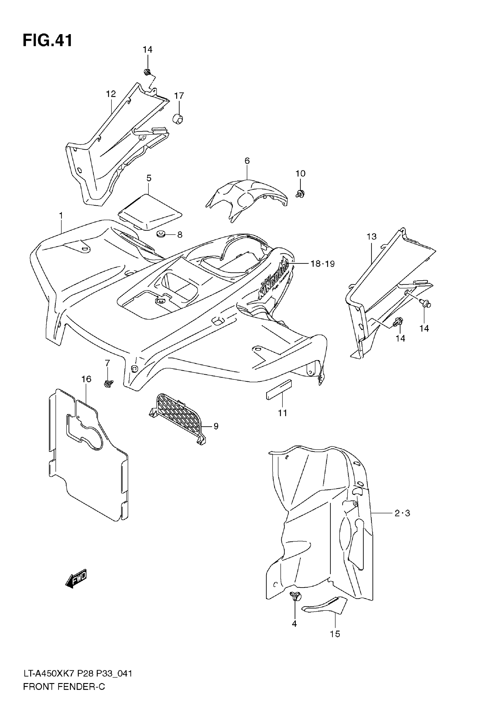 Suzuki LT-A450X (2009) FRONT FENDER (MODEL K7/K8) Diagram