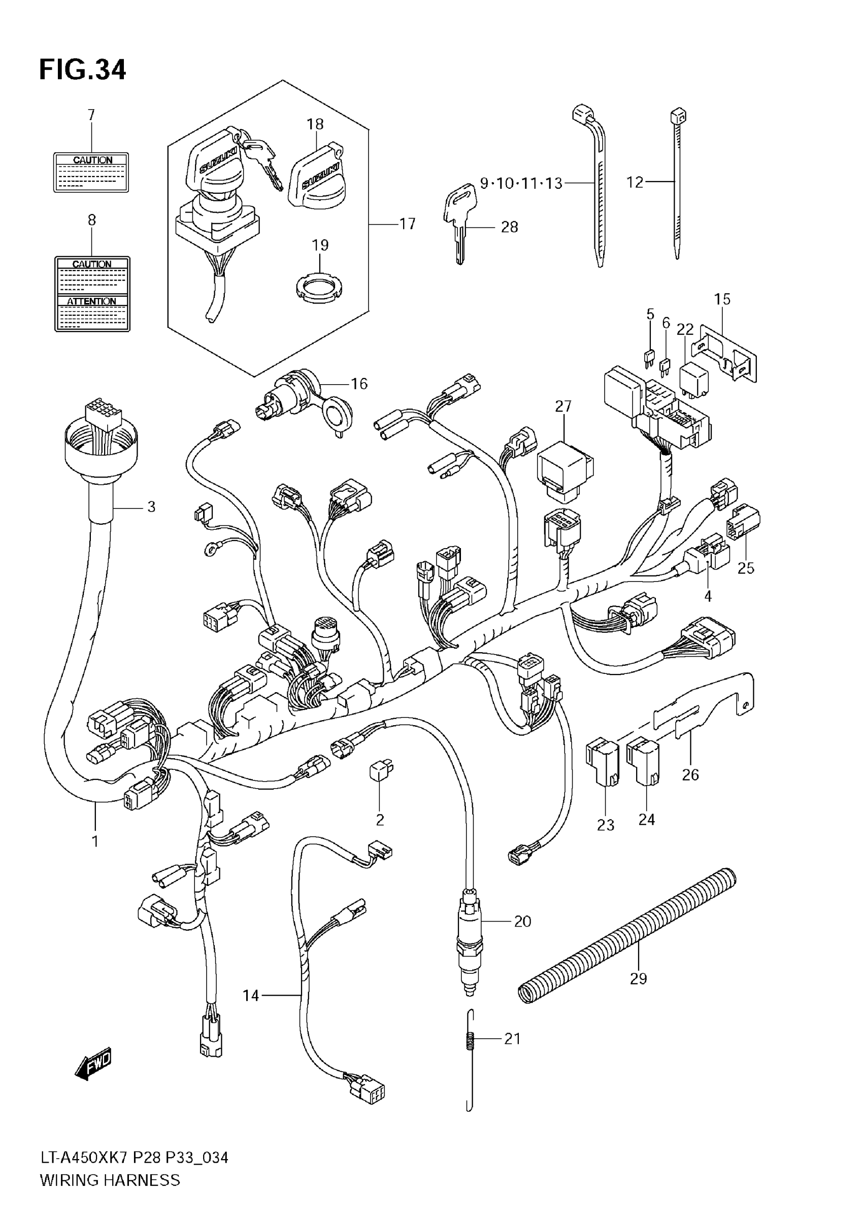 Suzuki LT-A450XK7 (2010) WIRING HARNESS Diagram