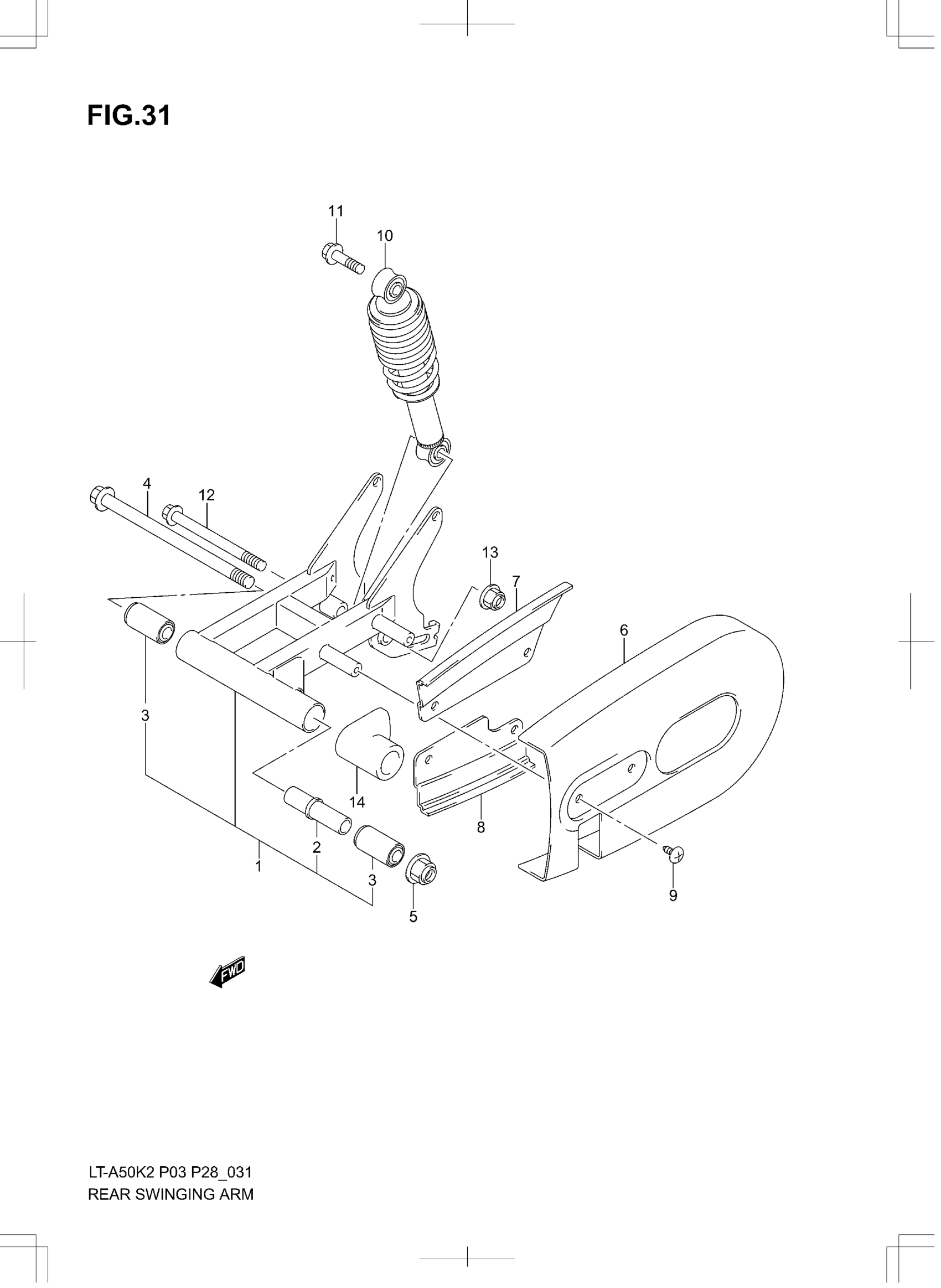 Suzuki LT-A50 (2005) REAR SWINGINGARM Diagram