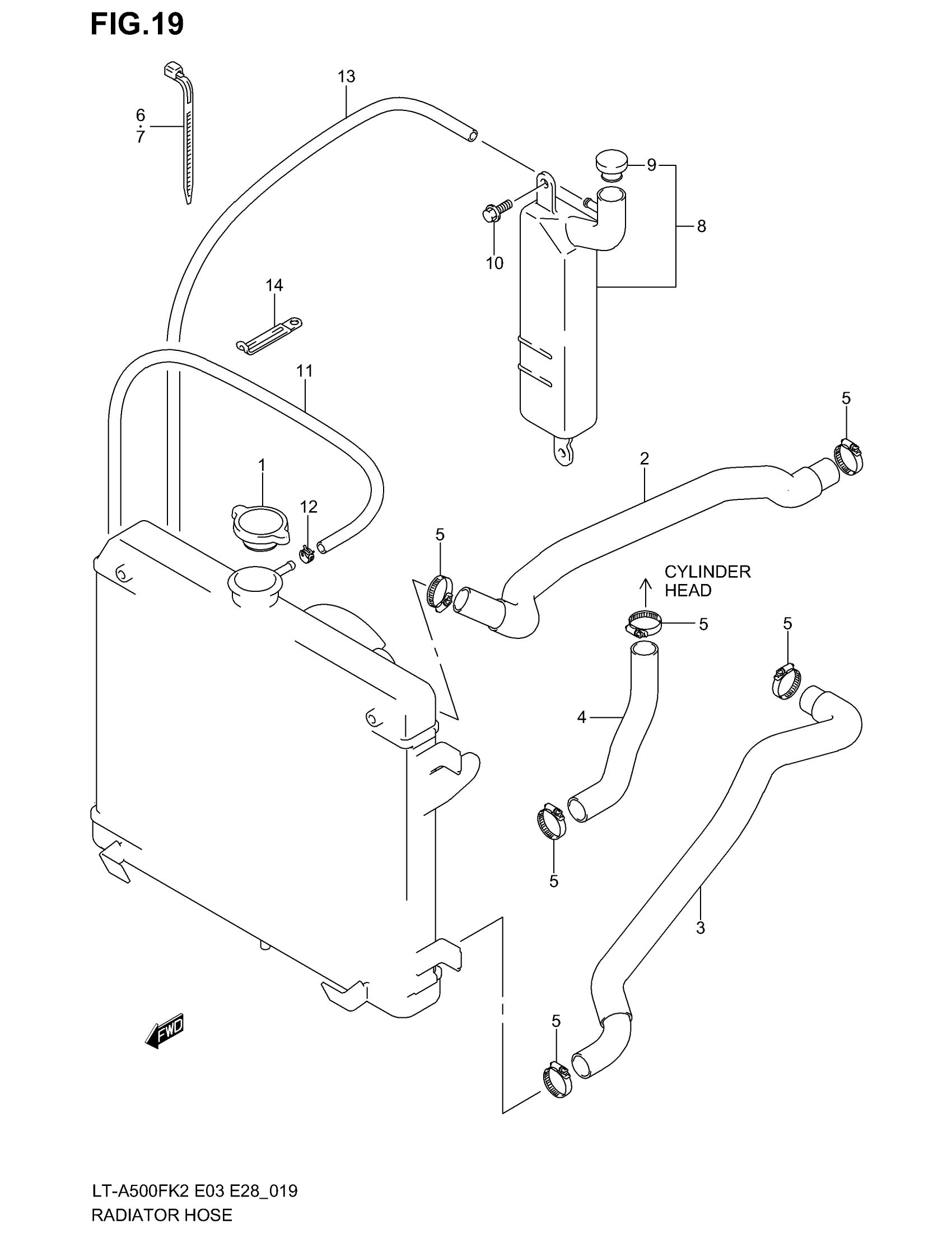 Suzuki LT-A500F (2003) RADIATOR HOSE Diagram