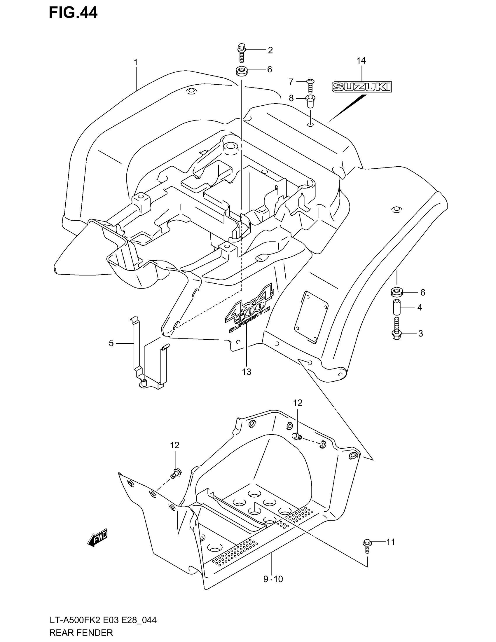 Suzuki LT-A500F (2003) REAR FENDER Diagram