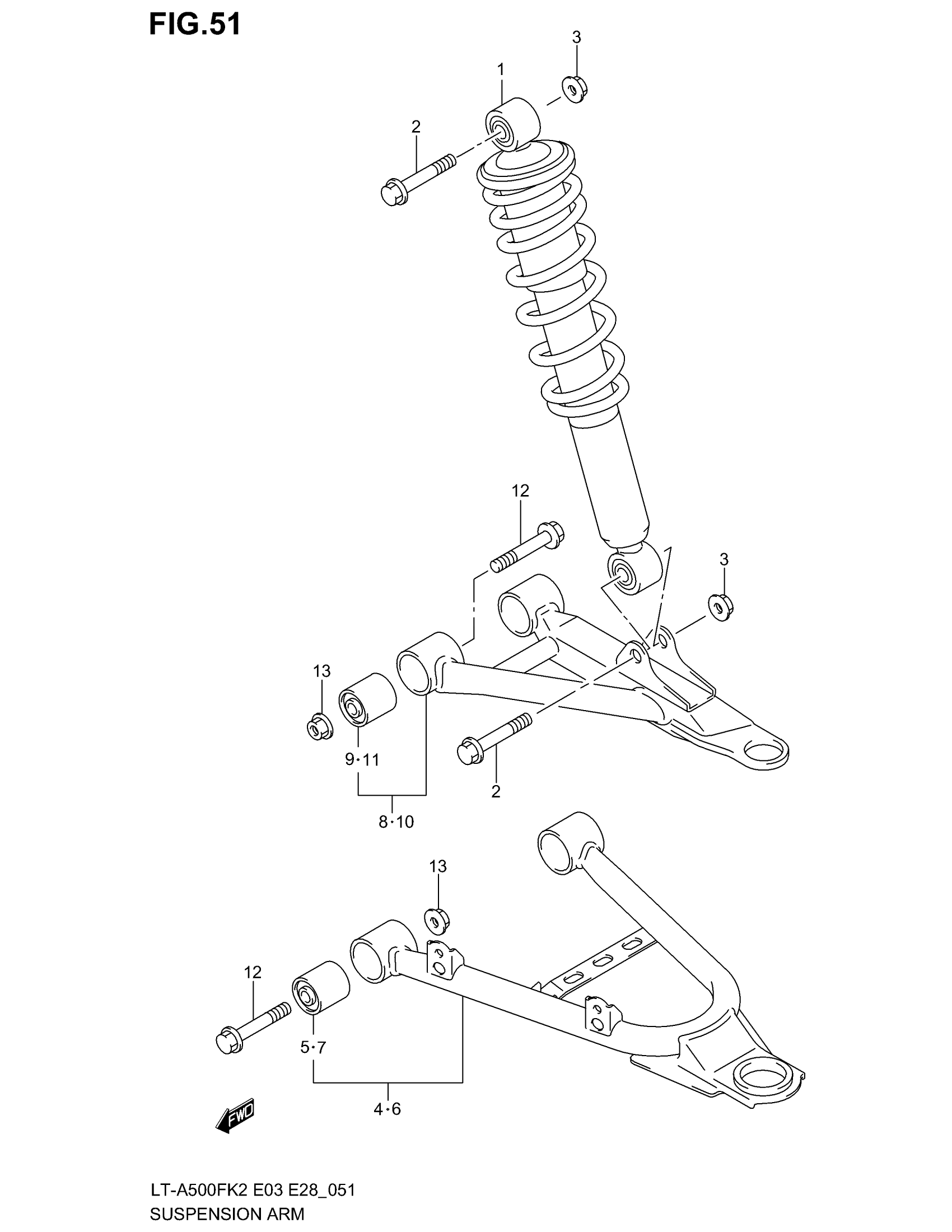 Suzuki LT-A500F (2003) SUSPENSION ARM Diagram
