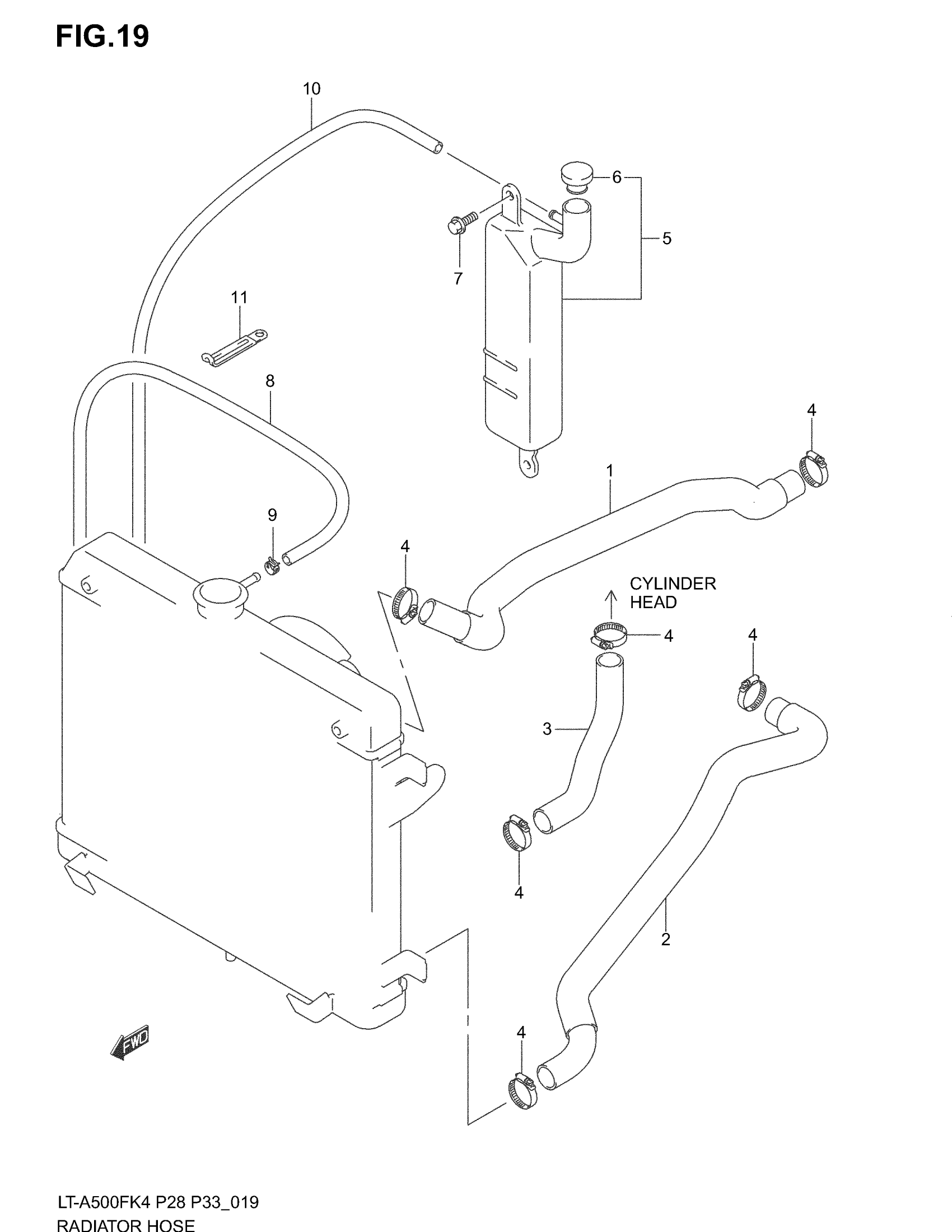 Suzuki LT-A500FB (2004) RADIATOR HOSE Diagram