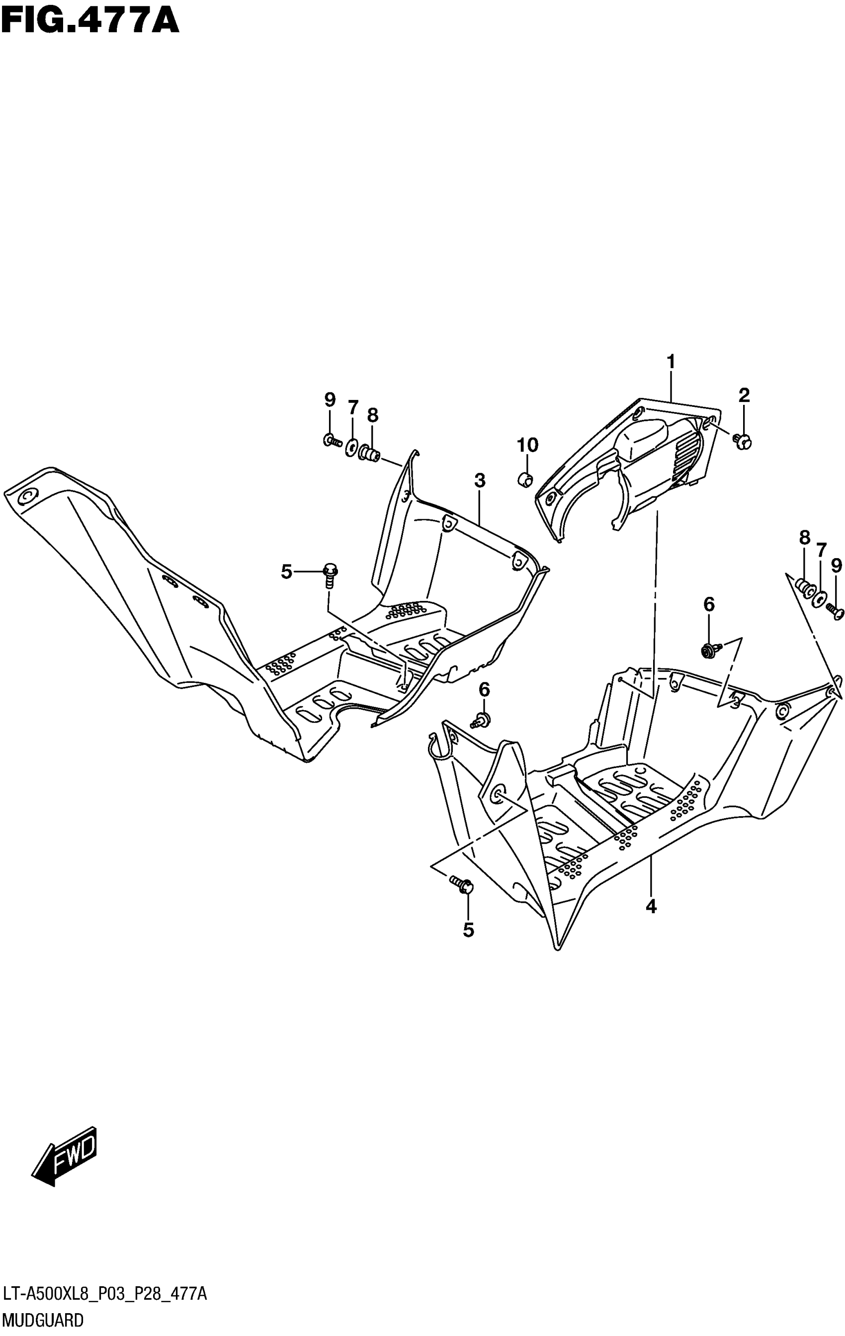 Suzuki LT-A500X, AXI, L8 (2018) MUDGUARD Diagram