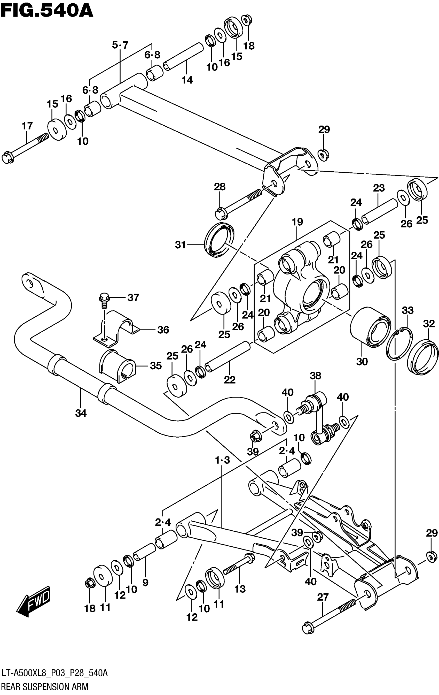 Suzuki LT-A500X, AXI, L8 (2018) REAR SUSPENSION ARM Diagram
