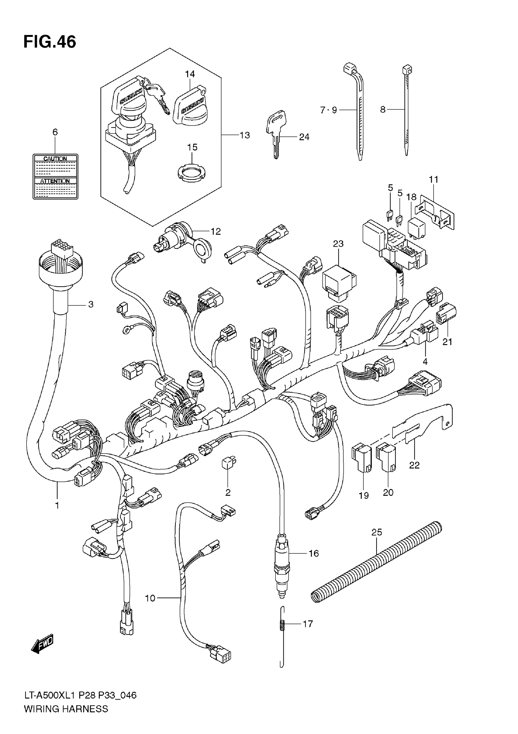 Suzuki LT-A500XL1 (2011) WIRING HARNESS (LT-A500X L1 E28) Diagram
