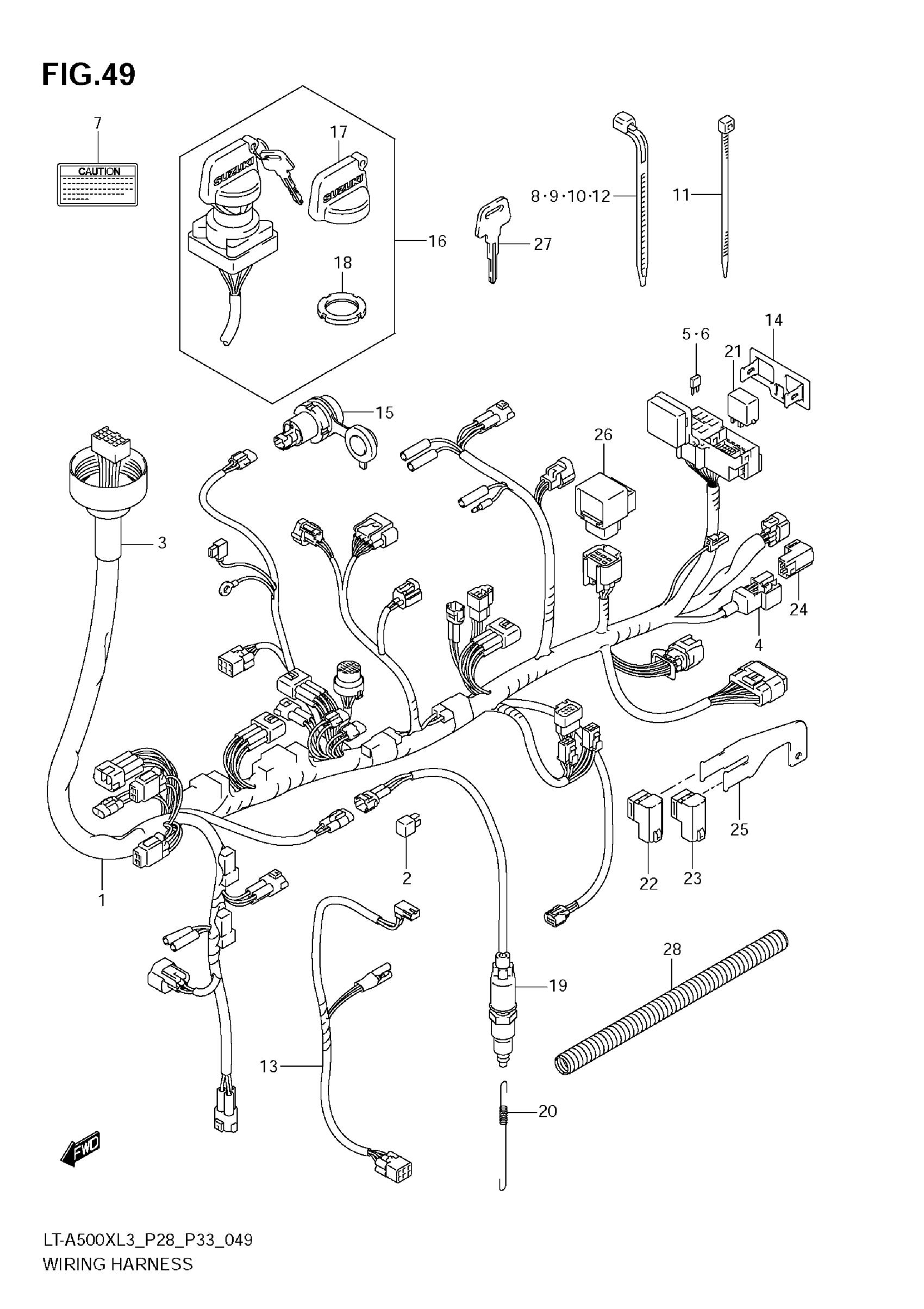 Suzuki LT-A500XL3 (2013) WIRING HARNESS (LT-A500XZL3 E33) Diagram