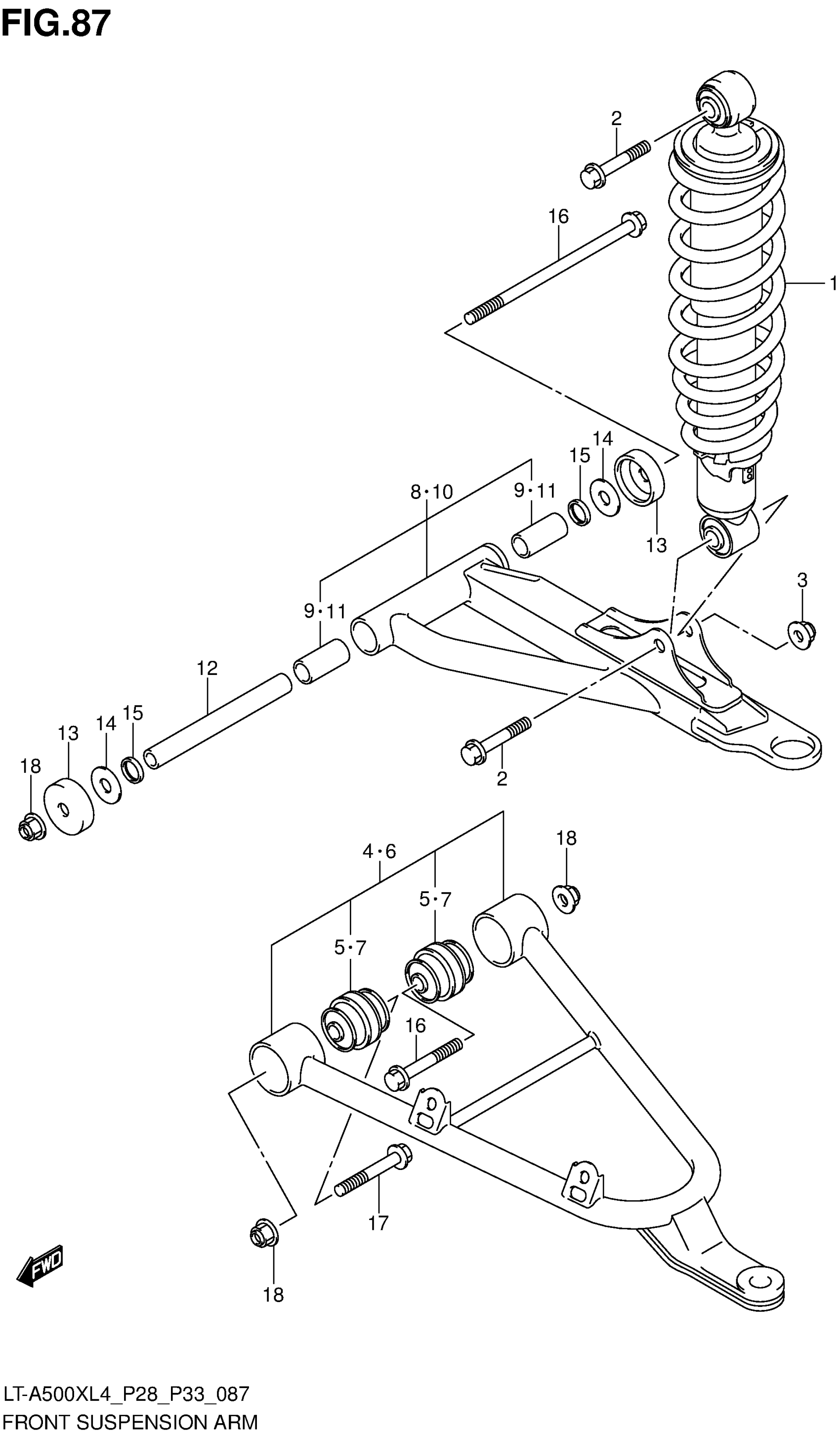 Suzuki LT-A500XL4 (2014) FRONT SUSPENSION ARM Diagram