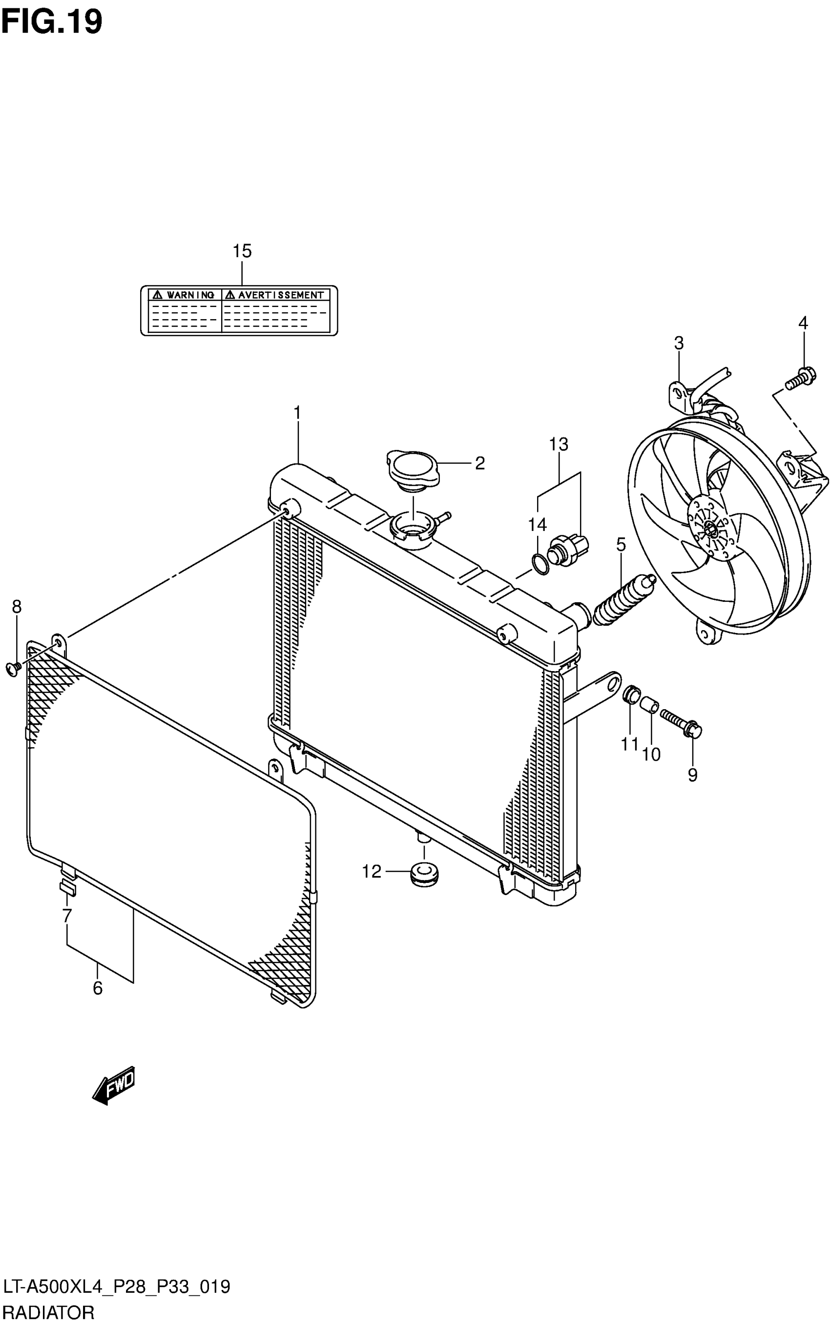 Suzuki LT-A500XL4 (2014) RADIATOR (LT-A500XL4 P28) Diagram