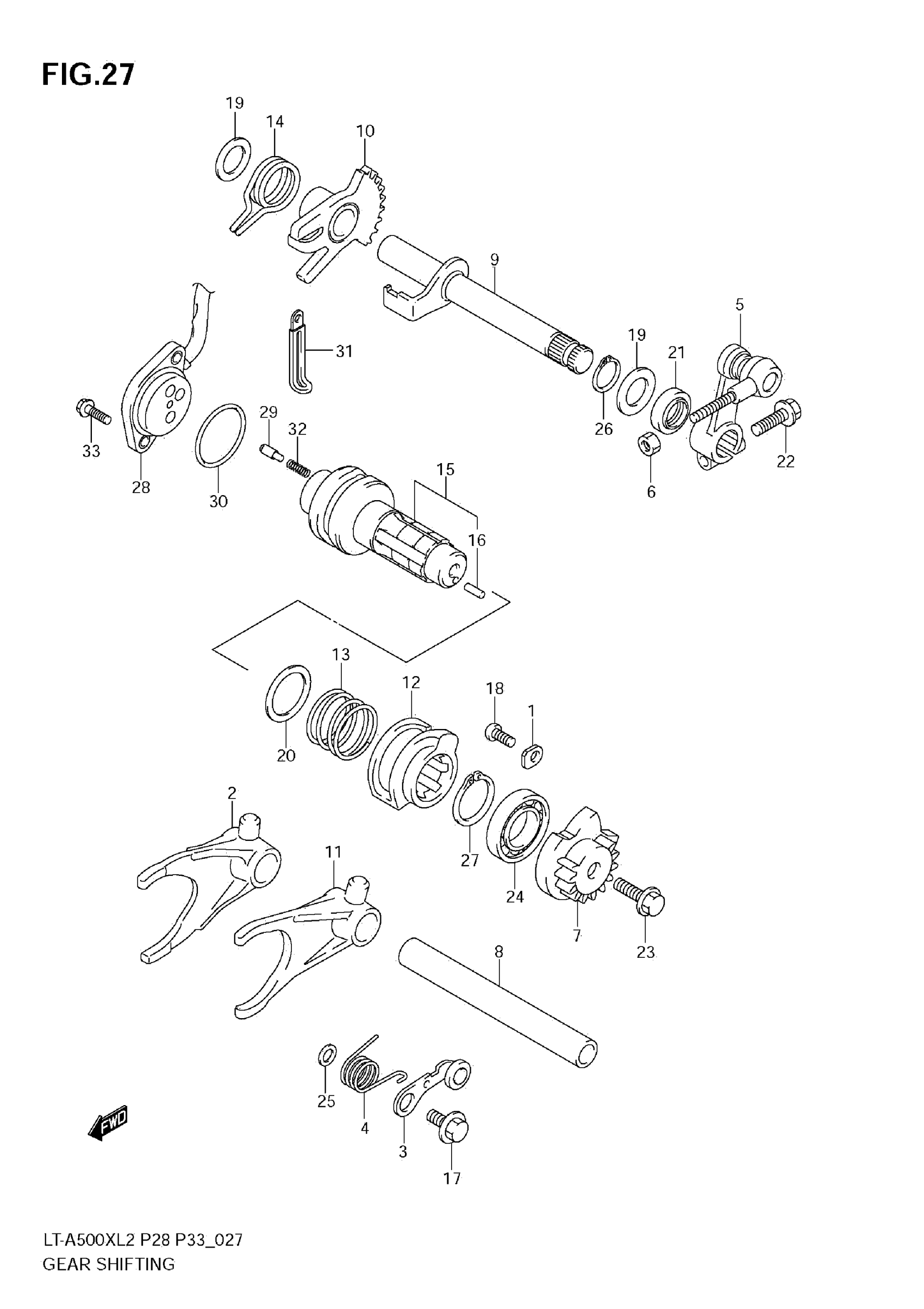 Suzuki LT-A500XLS2 (2012) GEAR SHIFTING Diagram