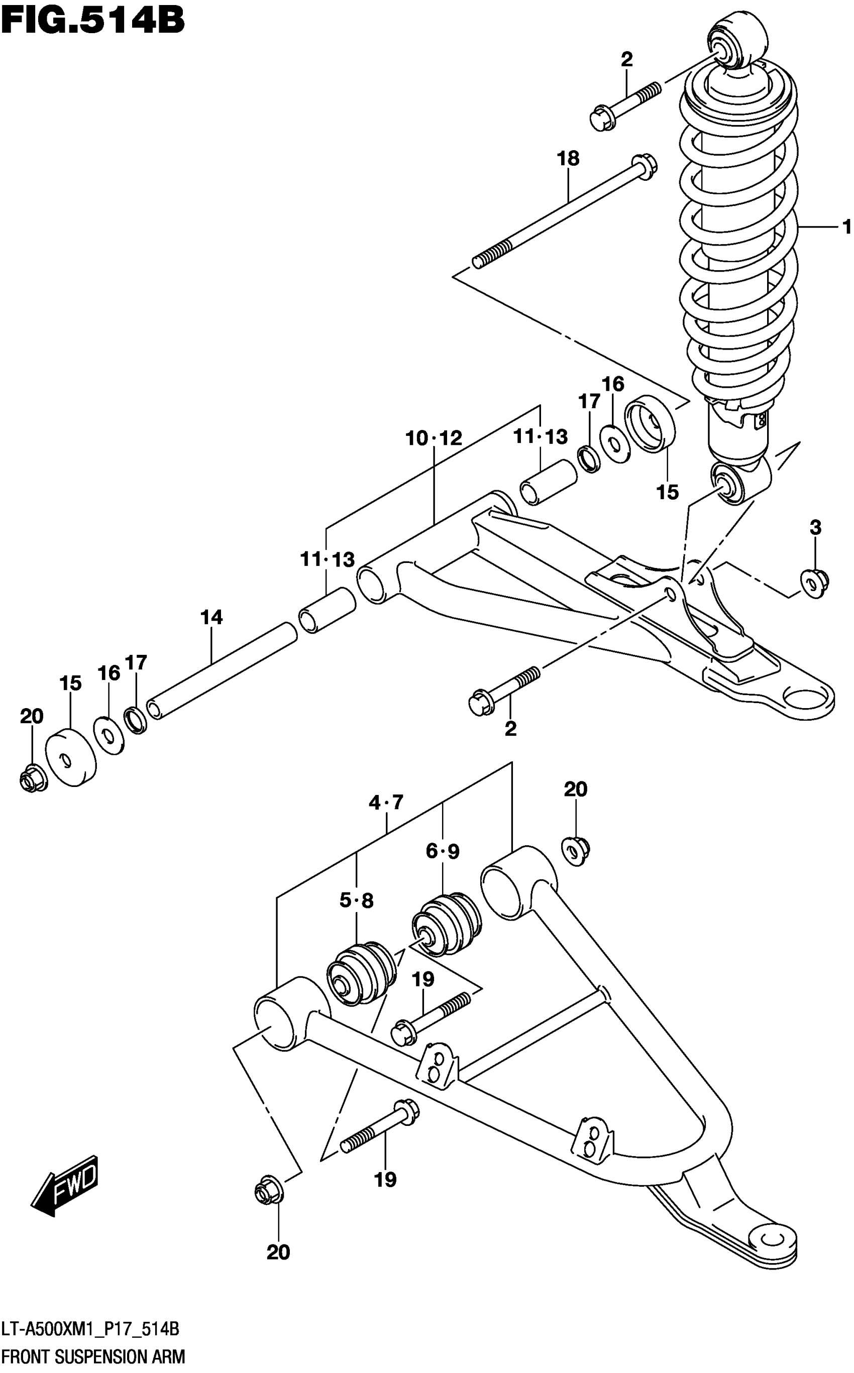 Suzuki LT-A500XM1 (2021) FRONT SUSPENSION ARM (LT-A500XPM1 P17) Diagram