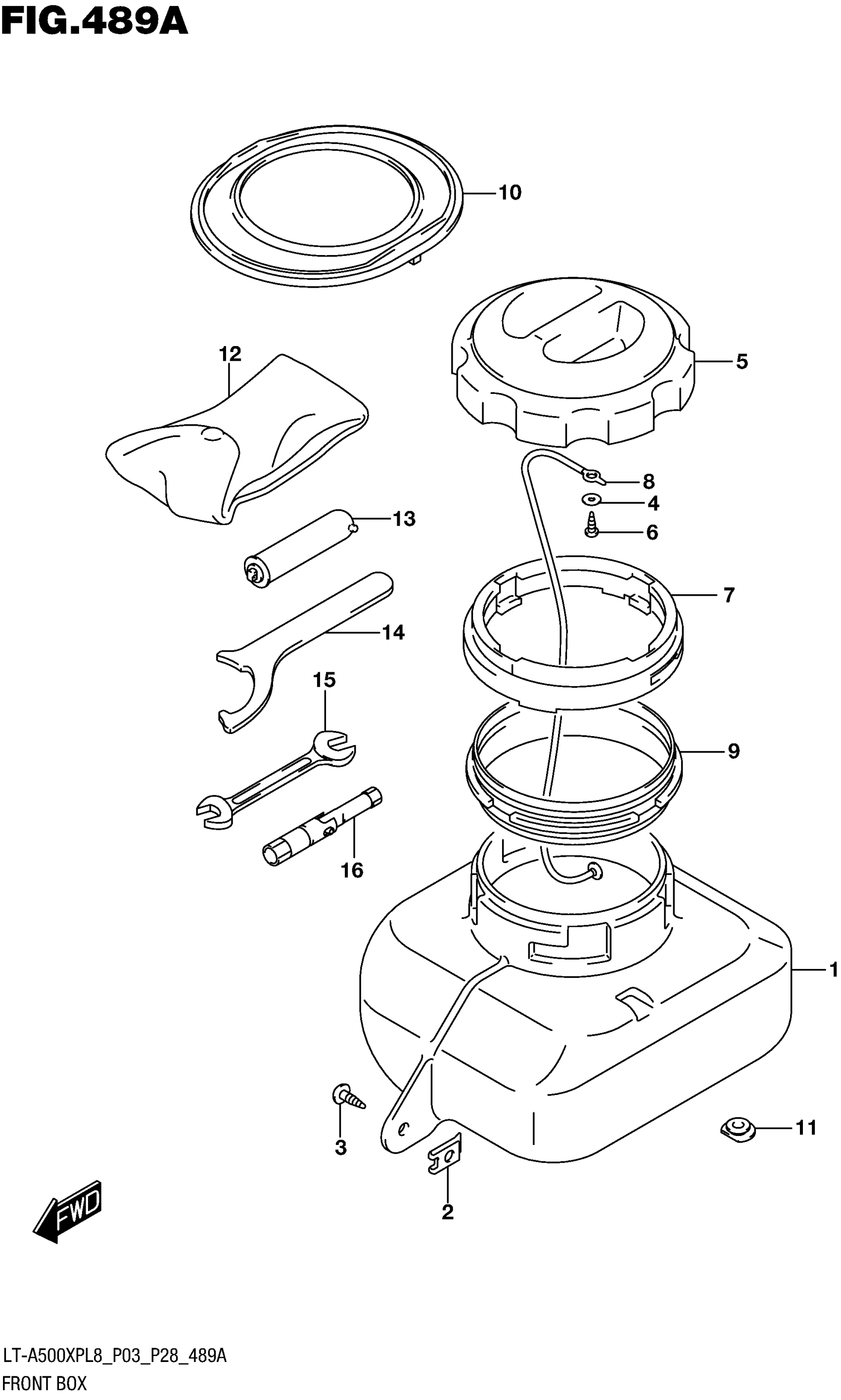 Suzuki LT-A500XP (AXI, RED/GREEN) (2018) FRONT BOX Diagram