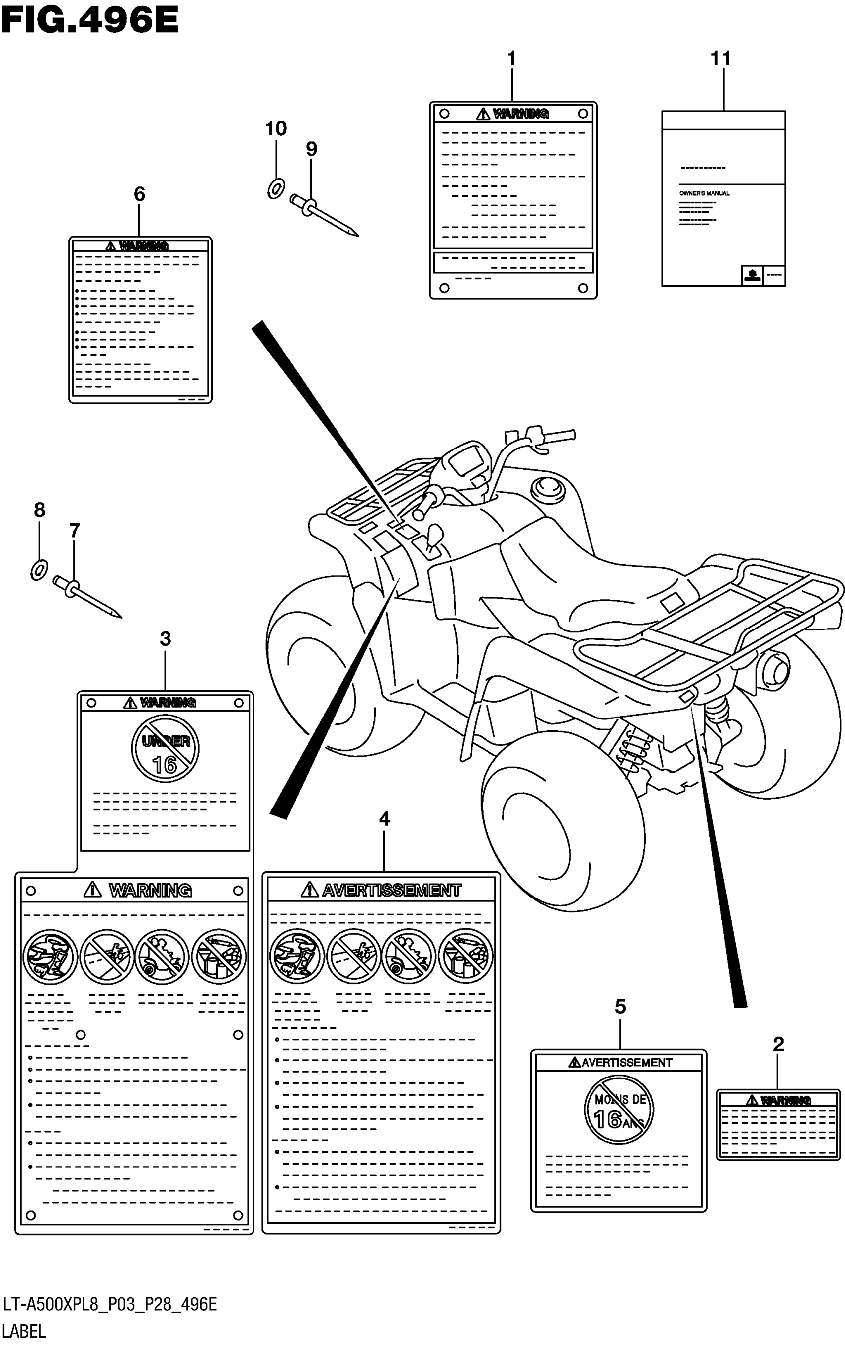 Suzuki LT-A500XP (AXI, RED/GREEN) (2018) LABEL (LT-A500XPBL8 P28) Diagram