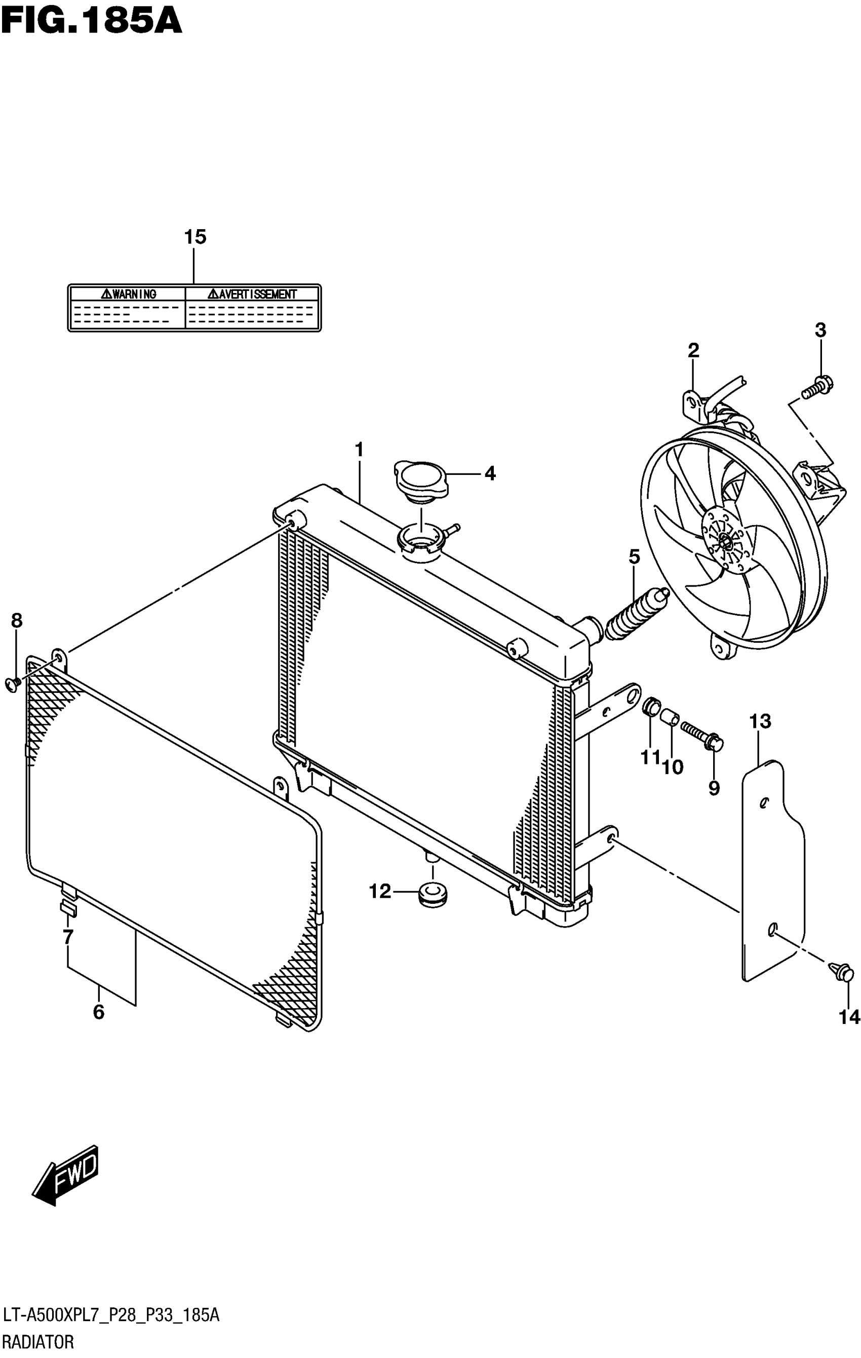 Suzuki LT-A500XPCL7 AXI, (XD3 CAMO) (2017) RADIATOR (LT-A500XPL7 P28) Diagram