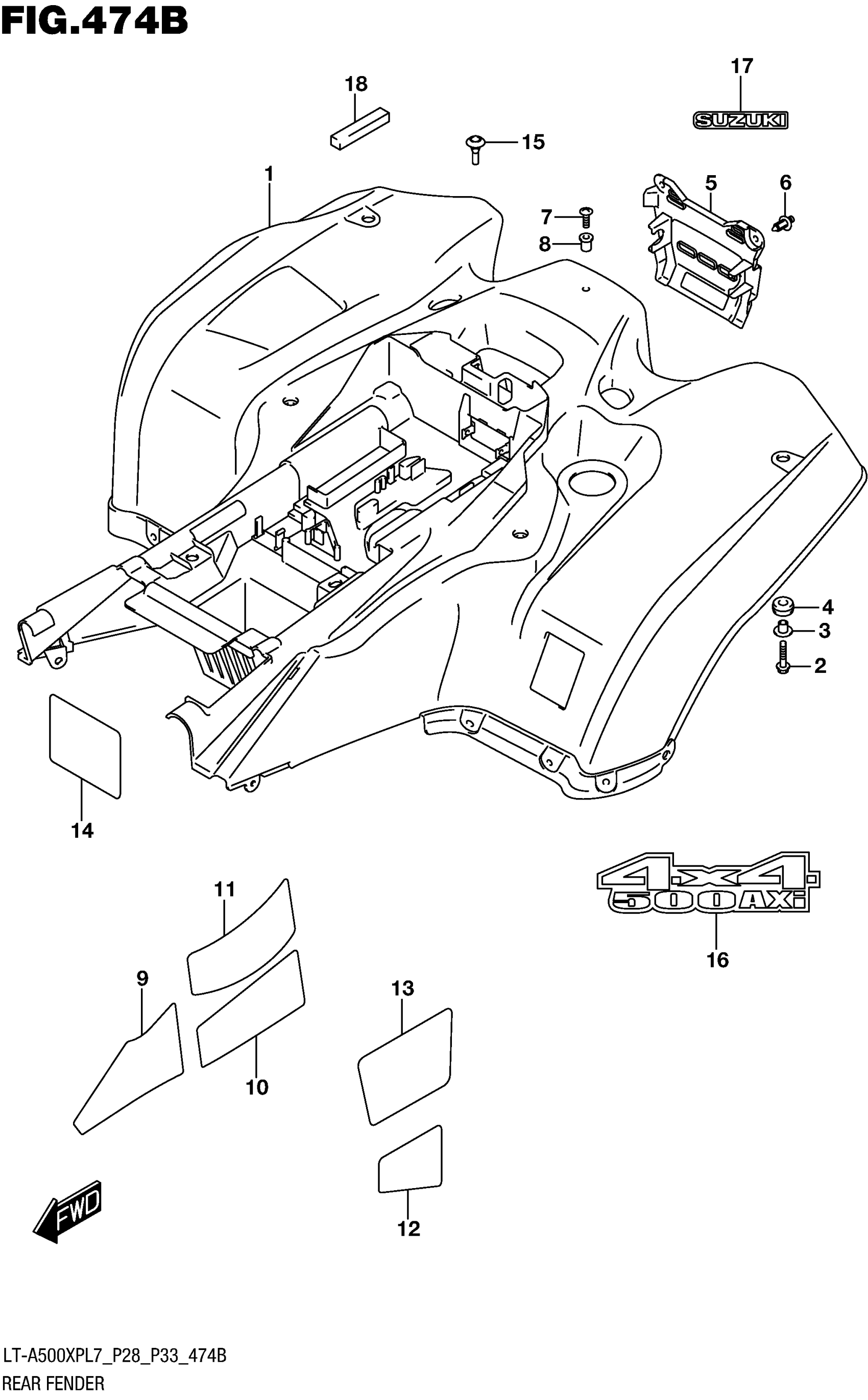 Suzuki LT-A500XPCL7 AXI, (XD3 CAMO) (2017) REAR FENDER (LT-A500XPL7 P33) Diagram