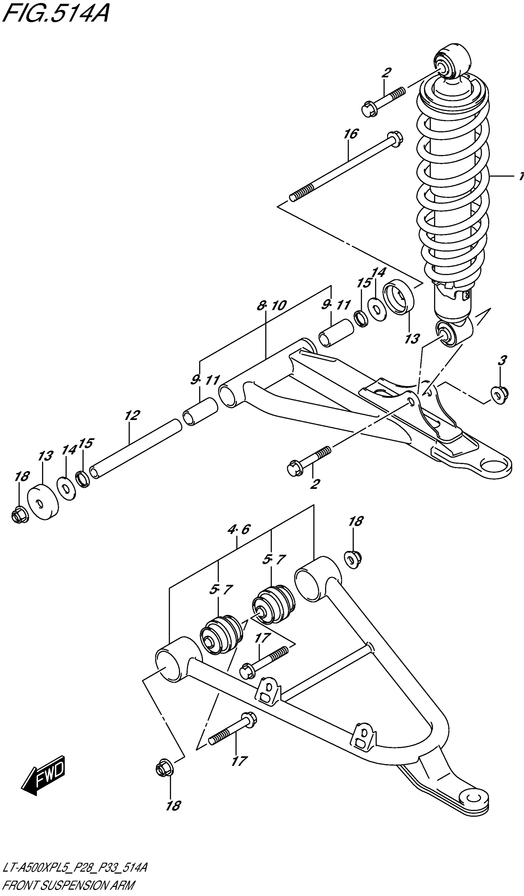 Suzuki LT-A500XPL5 (2015) FRONT SUSPENSION ARM Diagram