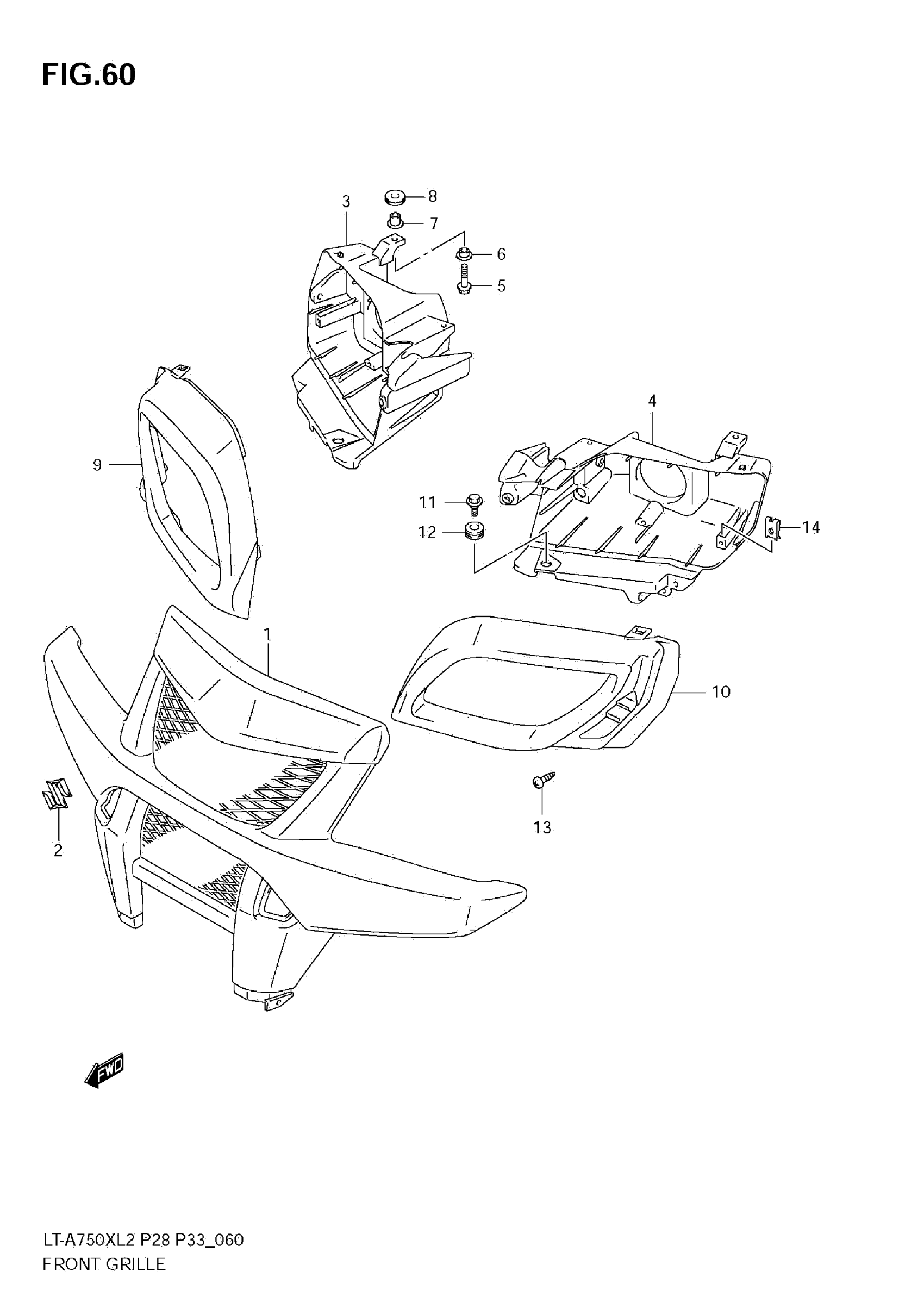 Suzuki LT-A750XL2 (2012) FRONT GRILLE (LT-A750X L2 E33) Diagram