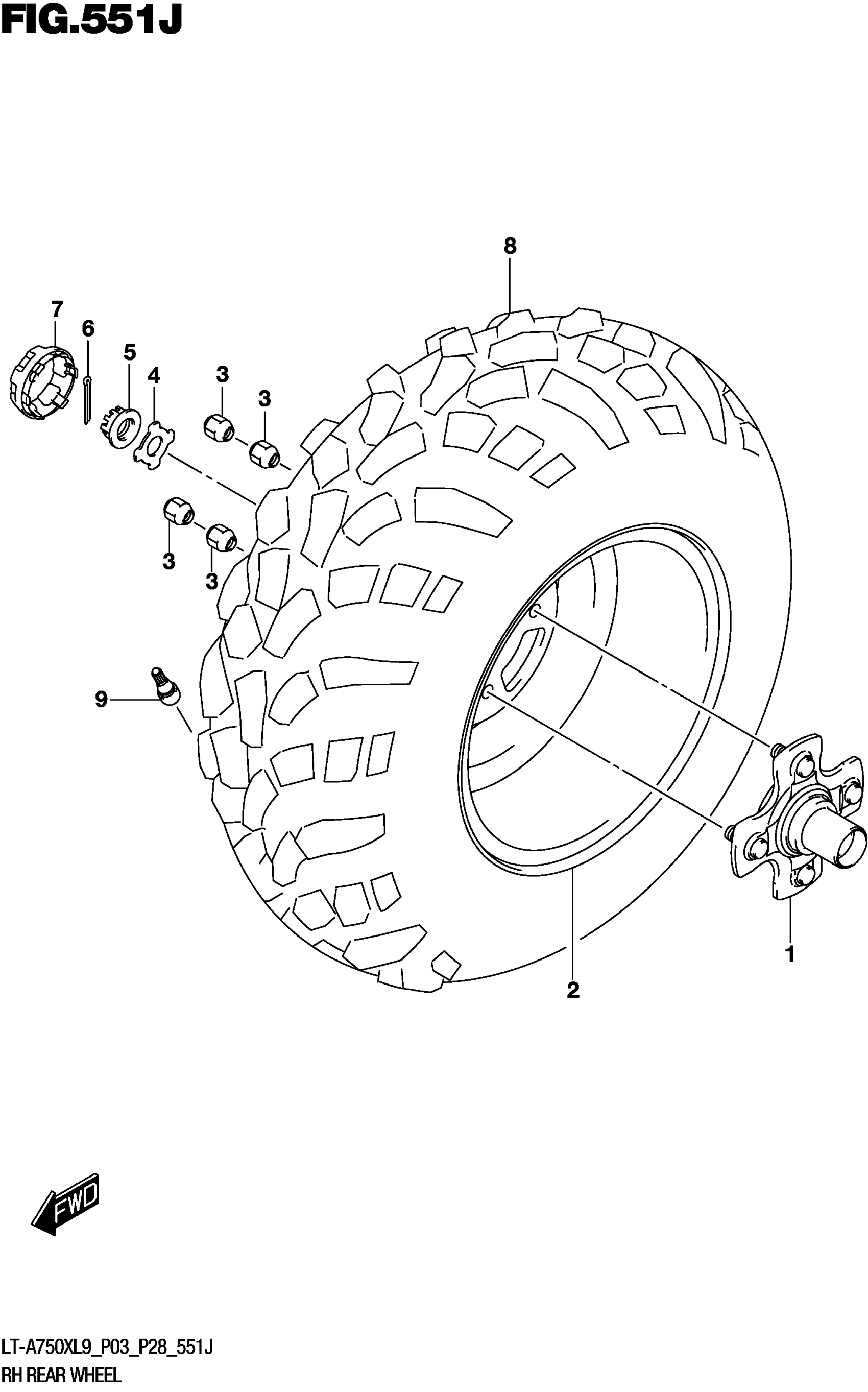 Suzuki LT-A750XL9 (2019) RH REAR WHEEL (LT-A750XPZL9 P33) Diagram